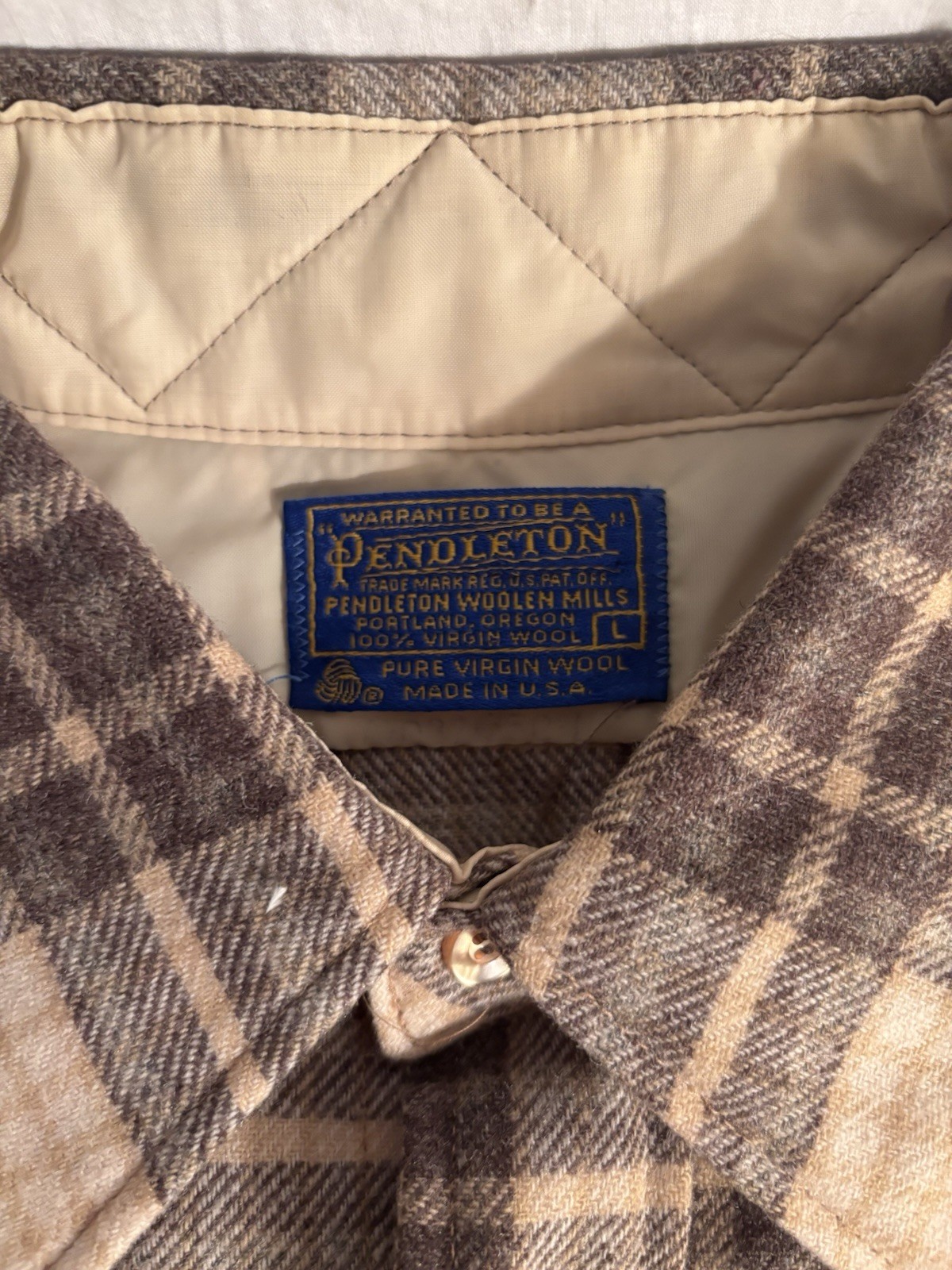 как выглядит Vintage 70 s Pendleton Mens Brown Beige Plaid Wool Flannel Button-Up Shirt фото