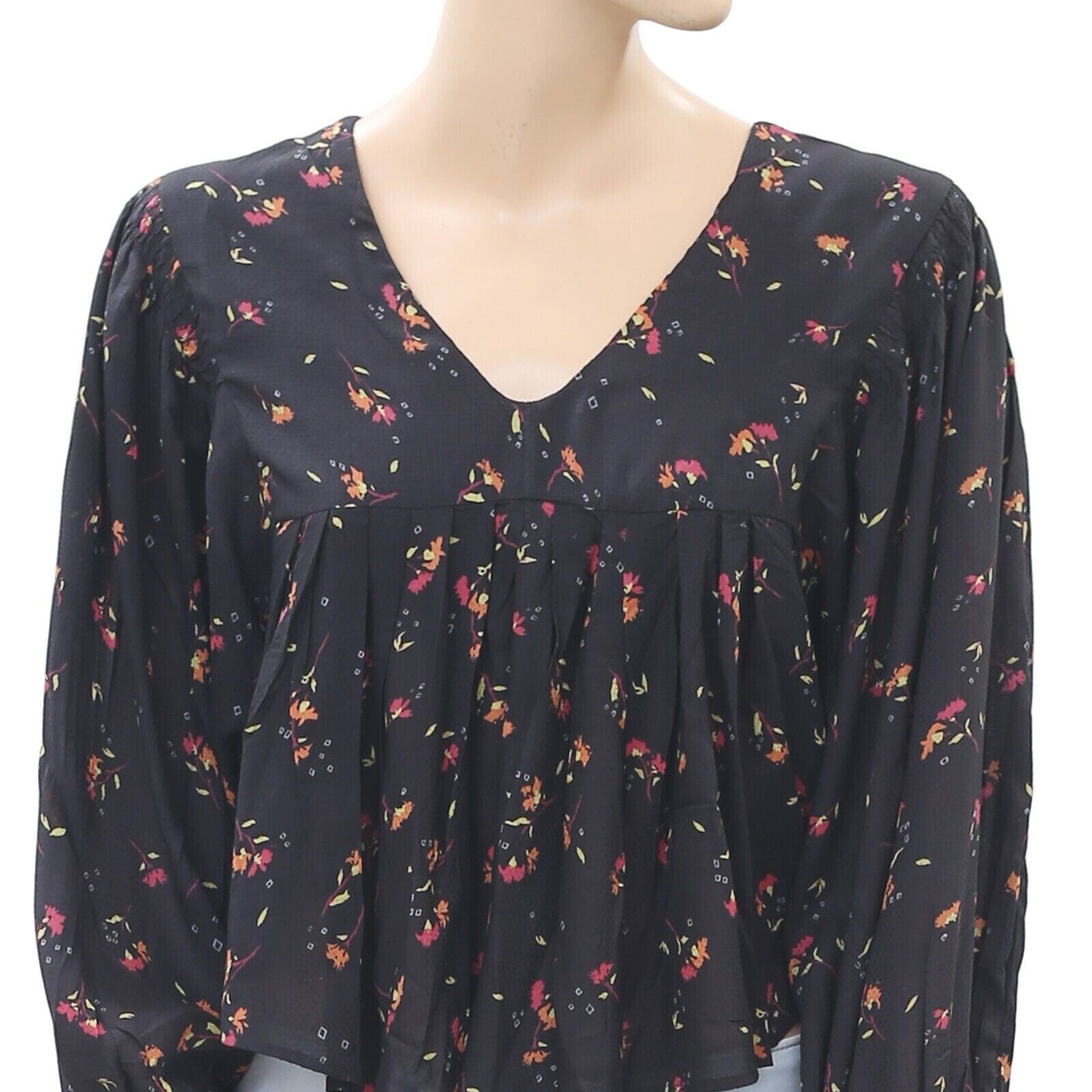 Free People Floral Print Blouse Top Black Dolman Long Sleeve High Low S 200903