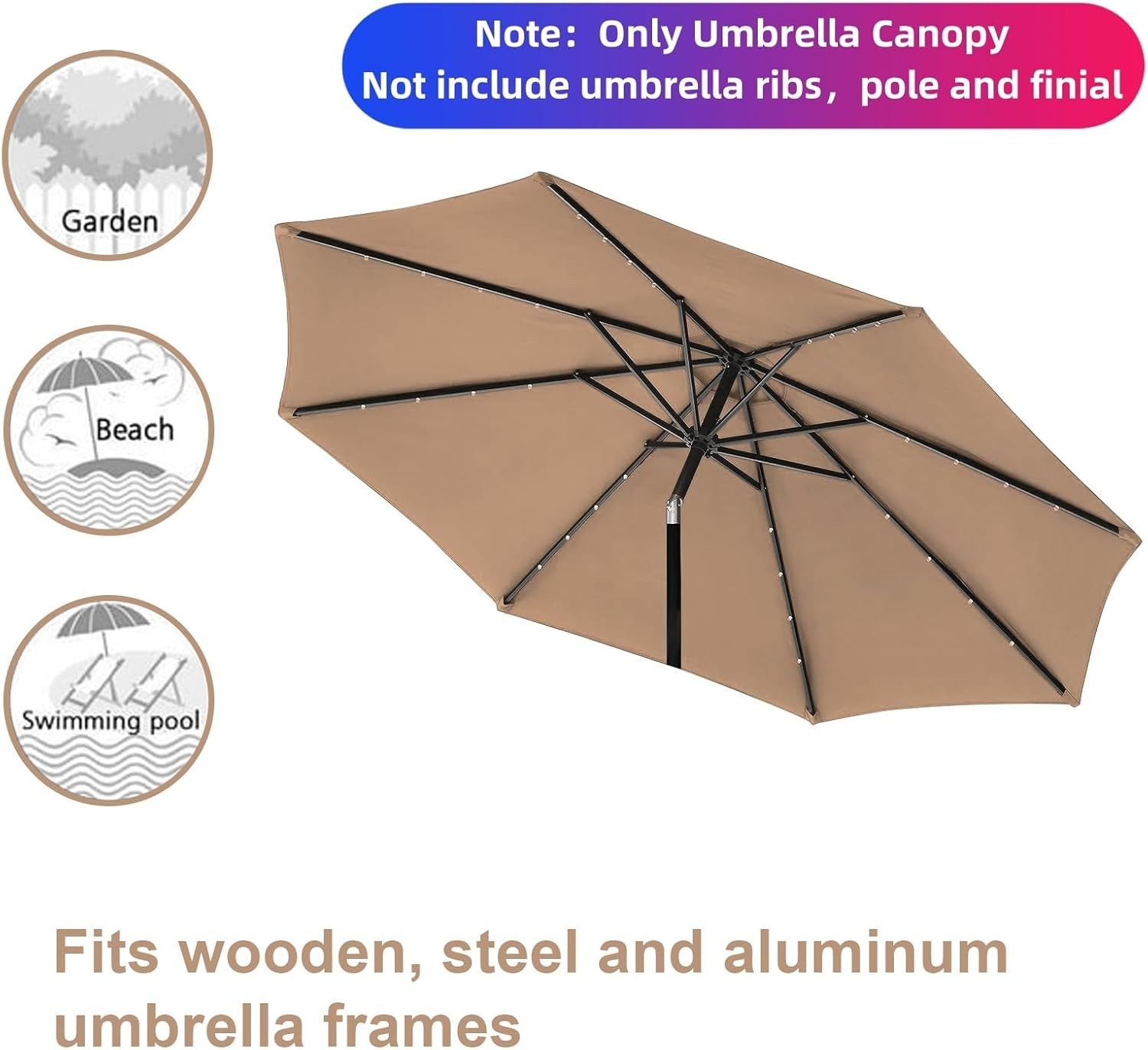 Stylish Khaki 9ft Patio Umbrella Replacement Canopy - Weather Resistant Cover