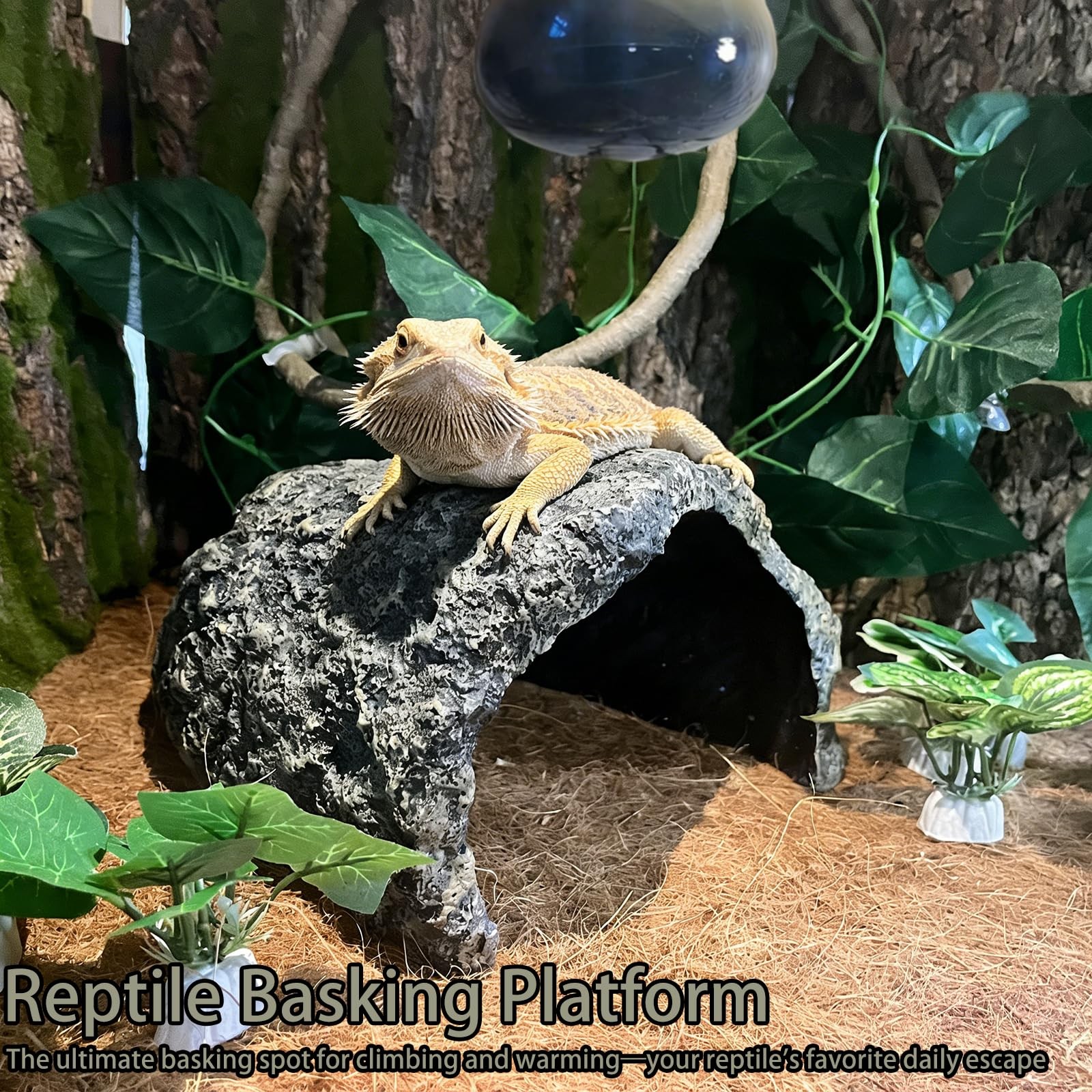 Extra Large Reptile Hideout,Tortoise Hide Cave Shelter,Reptile Basking Platfo...