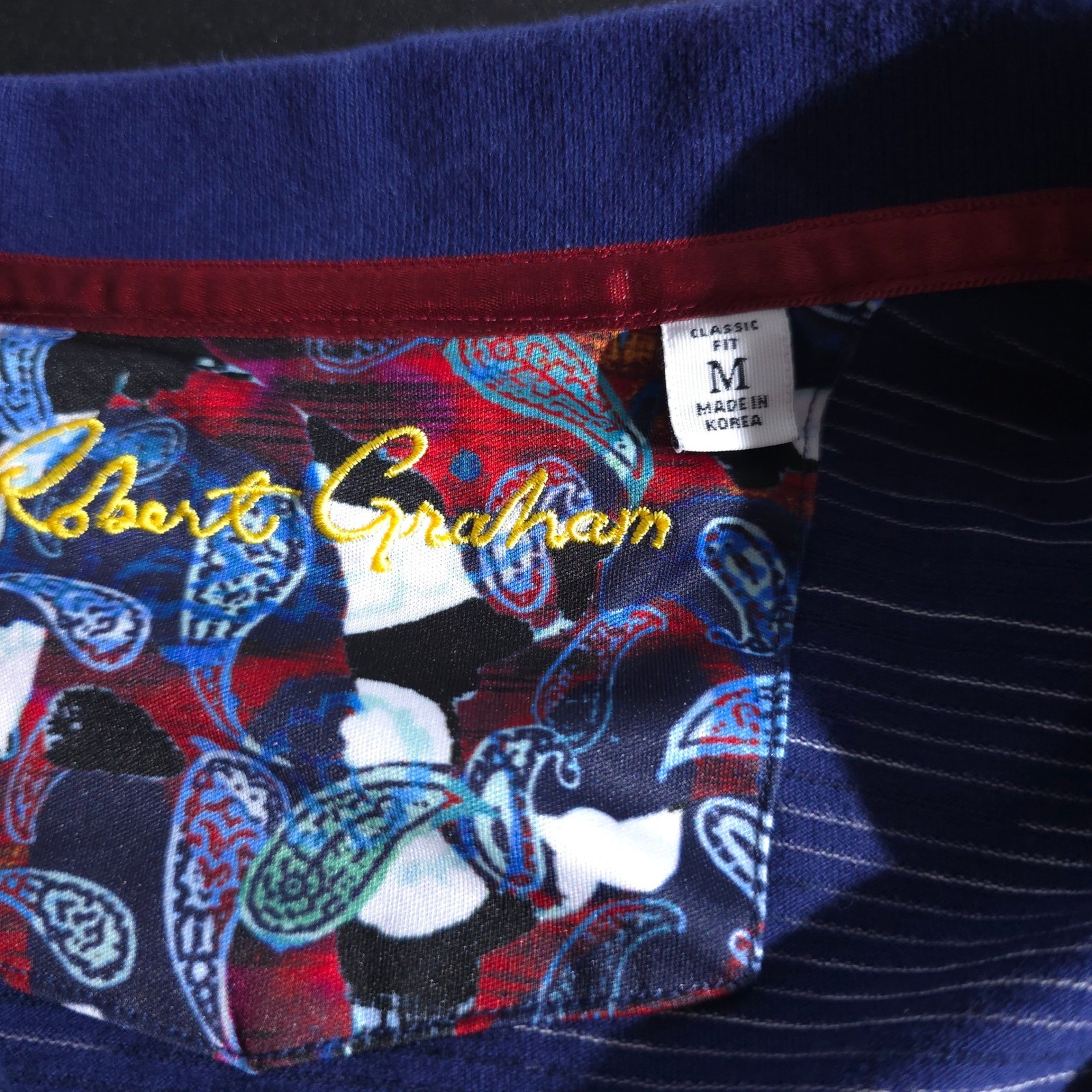 как выглядит Robert Graham Classic Fit Polo Shirt Mens Sz Medium Blue Striped Performances фото
