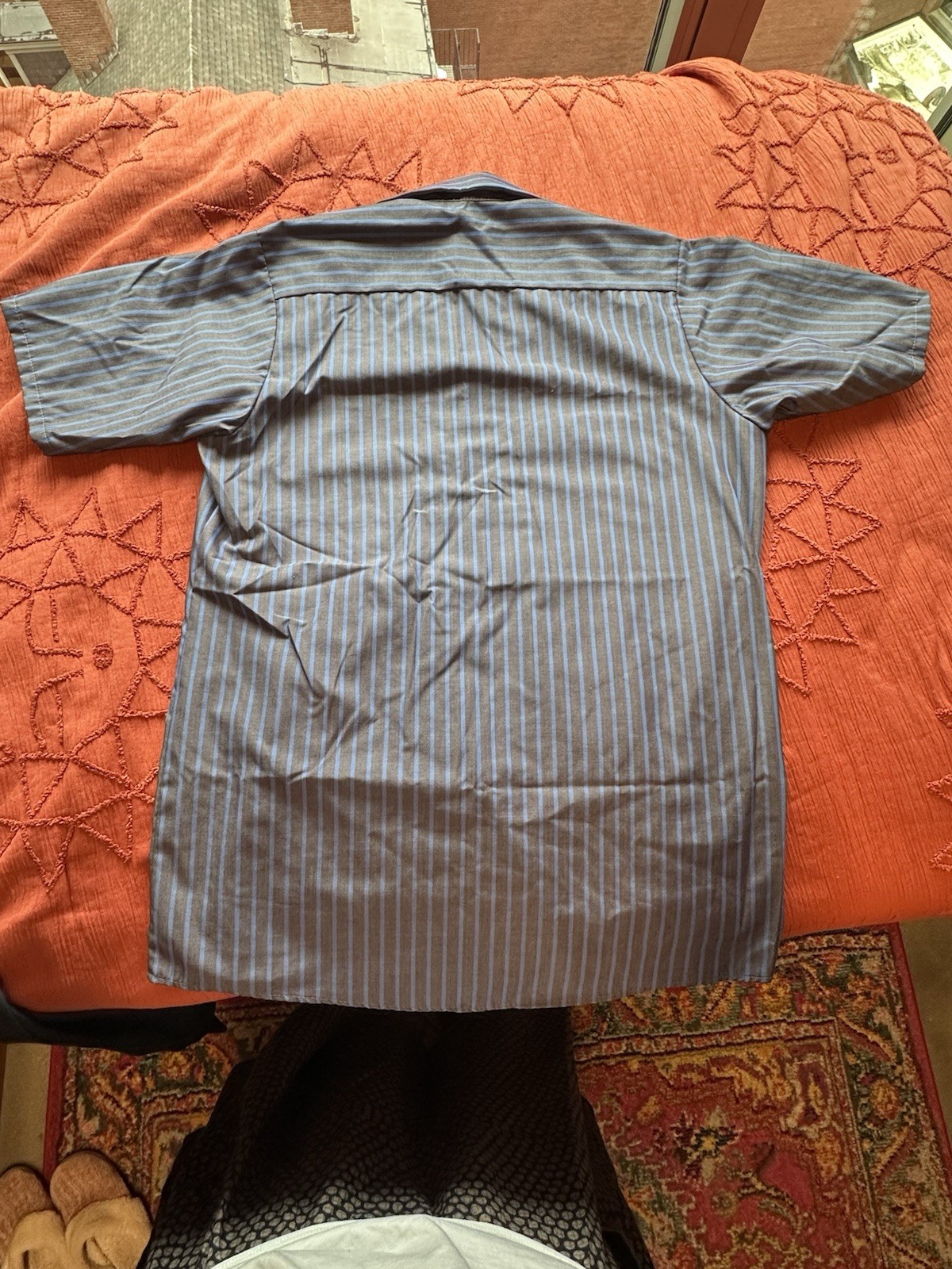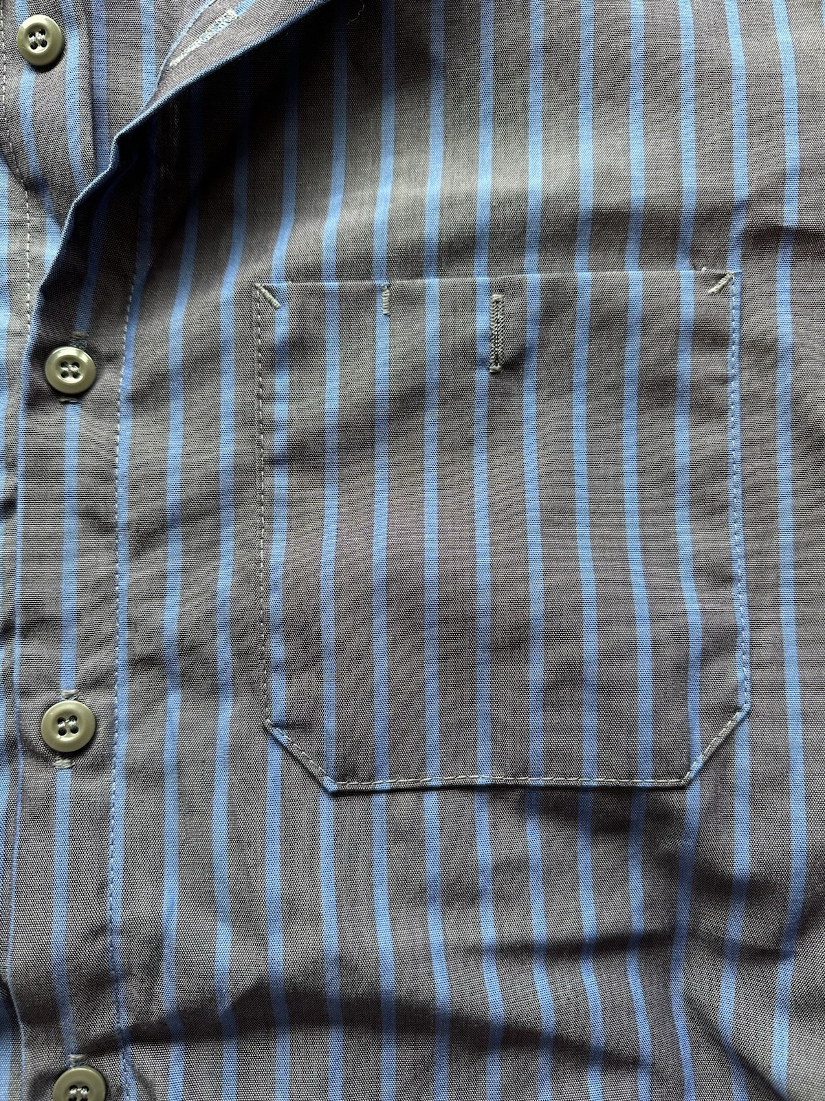 как выглядит Red Kap Mens Short Sleeve Striped Work Shirt Size M Gray Blue фото