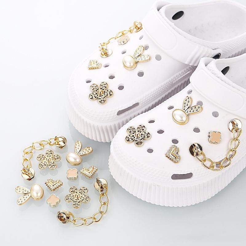 10pcs Rhinestone Flower Shoe Charms Pearl Sandal Decorations Set