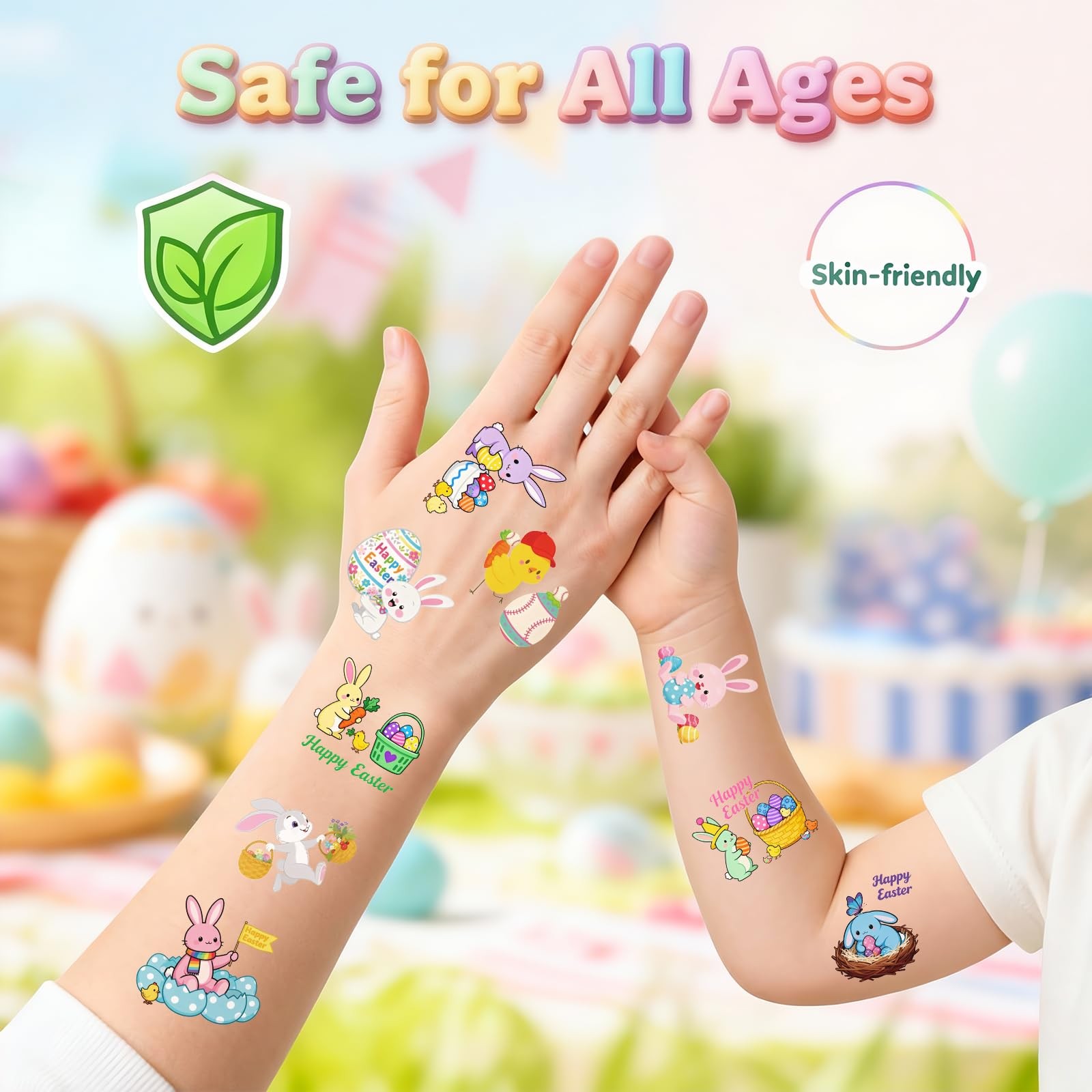 Easter Tattoos - 150 PCS Temporary Tattoo Stickers with Bunny Multicolor