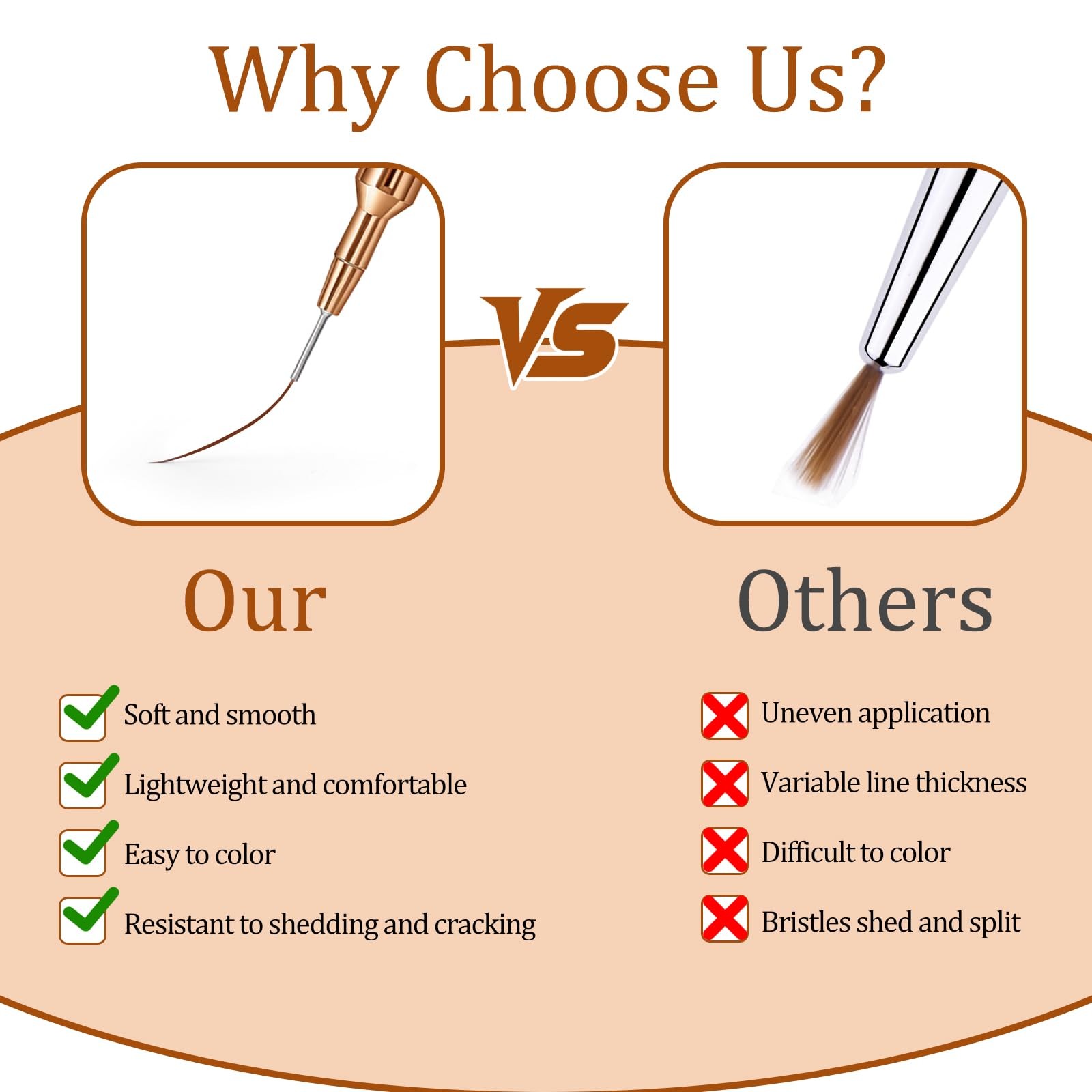 7PCS Metallic Nail Art Brushes Set, 7/9/11/15/25mm Liner Brush For Black