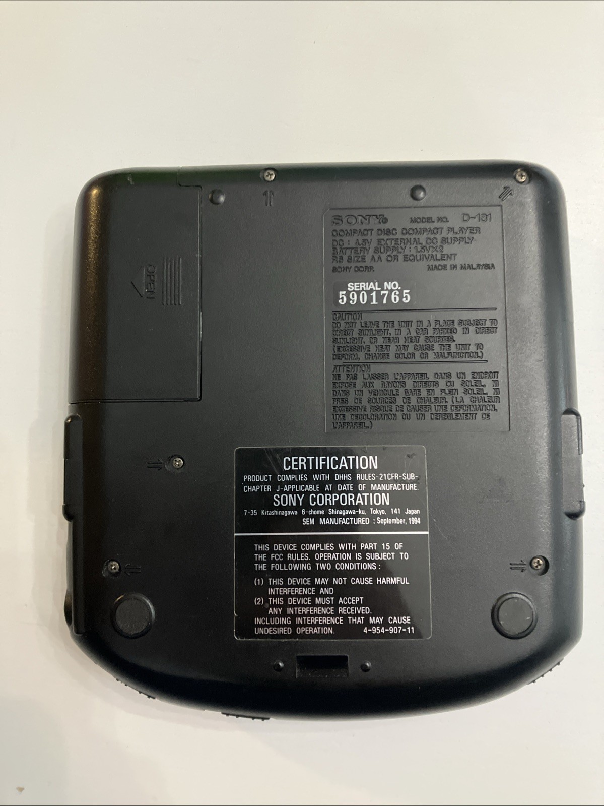 Sony Discman D-131 Compact CD Player with Mega Bass 1bit DAC AVLS Tested Works