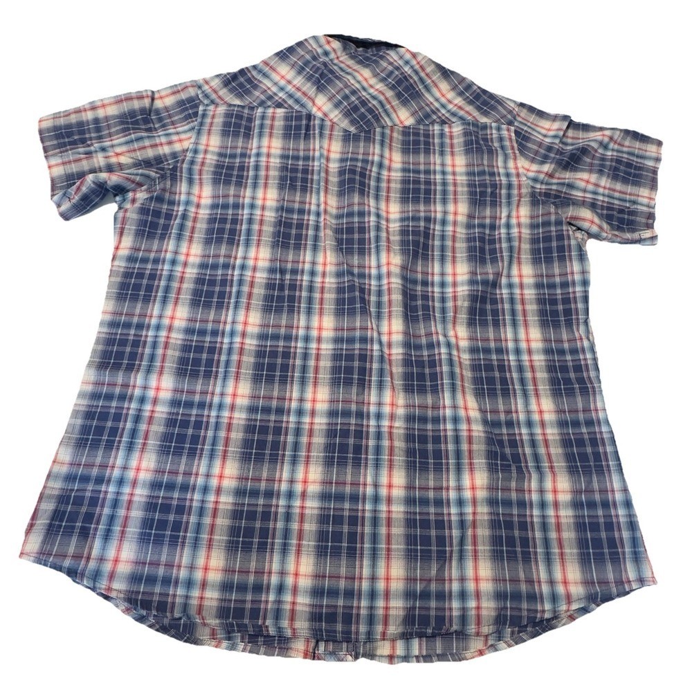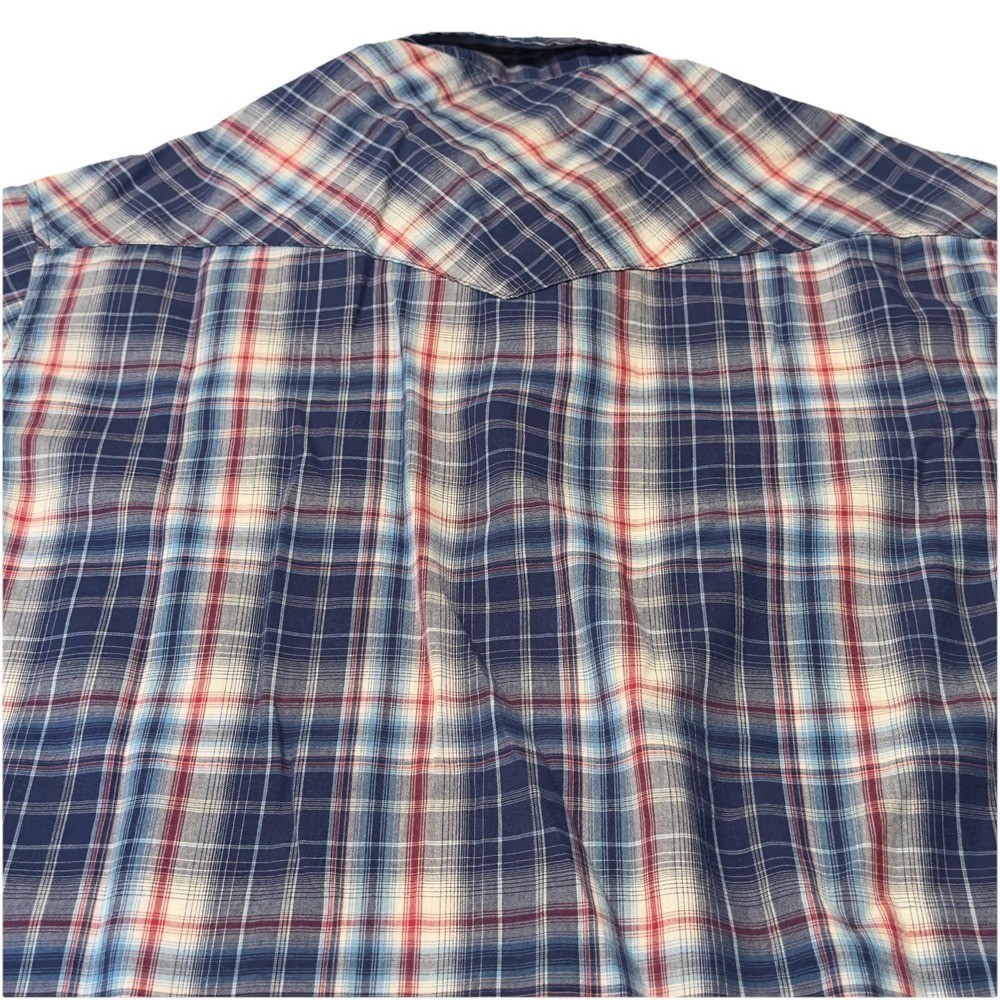 как выглядит Wrangler Pearl Snap Shirt Men X-Large Red White Blue Plaid Long Sleeve Western фото