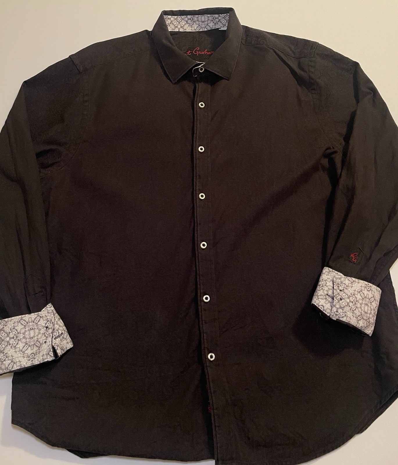 как выглядит Robert Graham Men s XL Paisley Print Long Sleeve Flip Cuff Designer Shirt фото