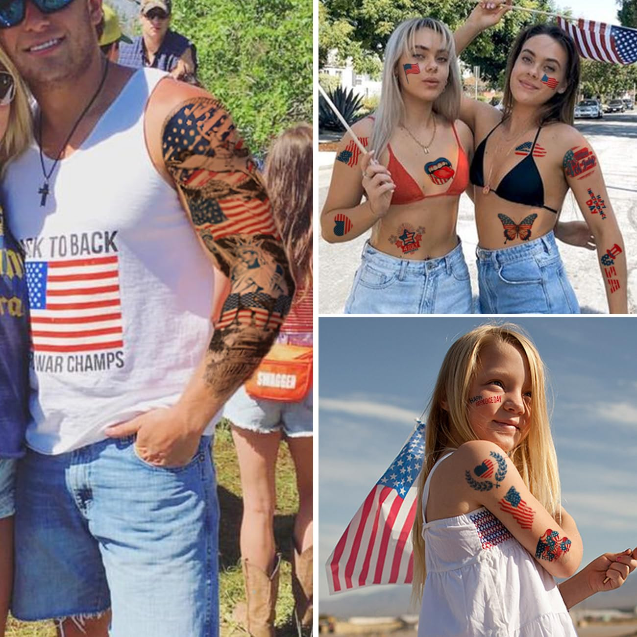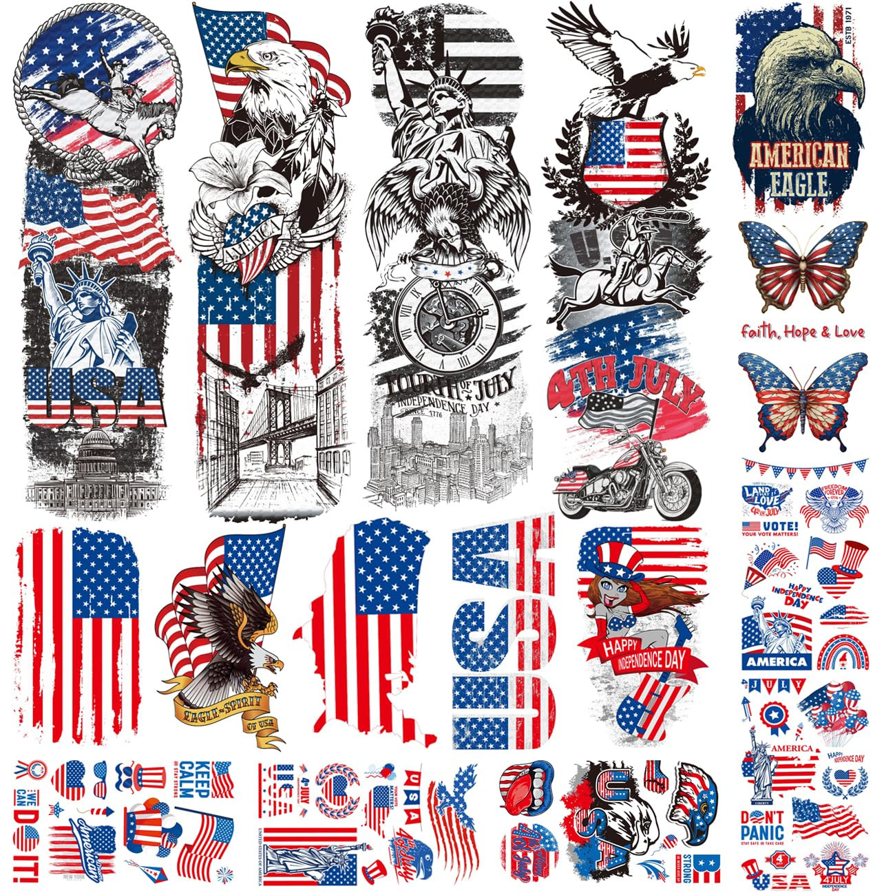 4th of July Temporary Tattoos Full Half Arm - American Flag Tattoos for Kids W