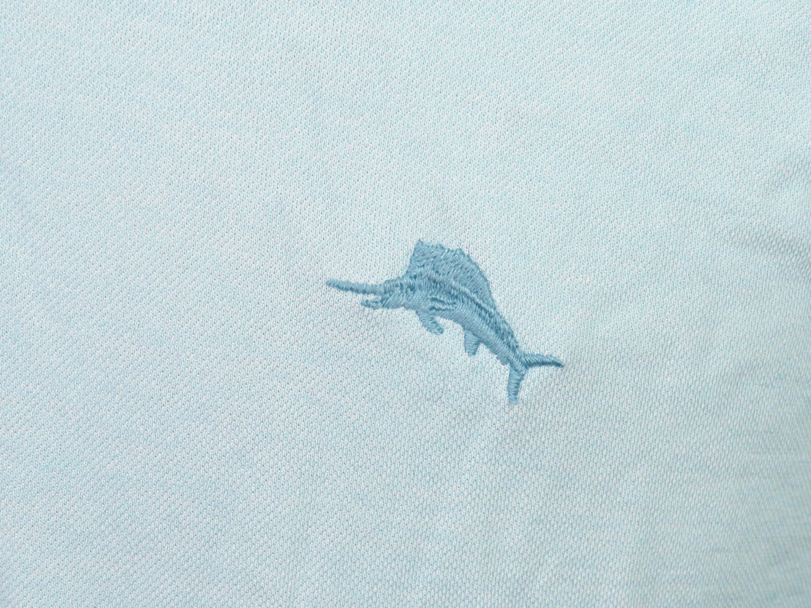 как выглядит Tommy Bahama Light Blue Stretch Knit Marlin Logo Polo Golf Shirt Men
