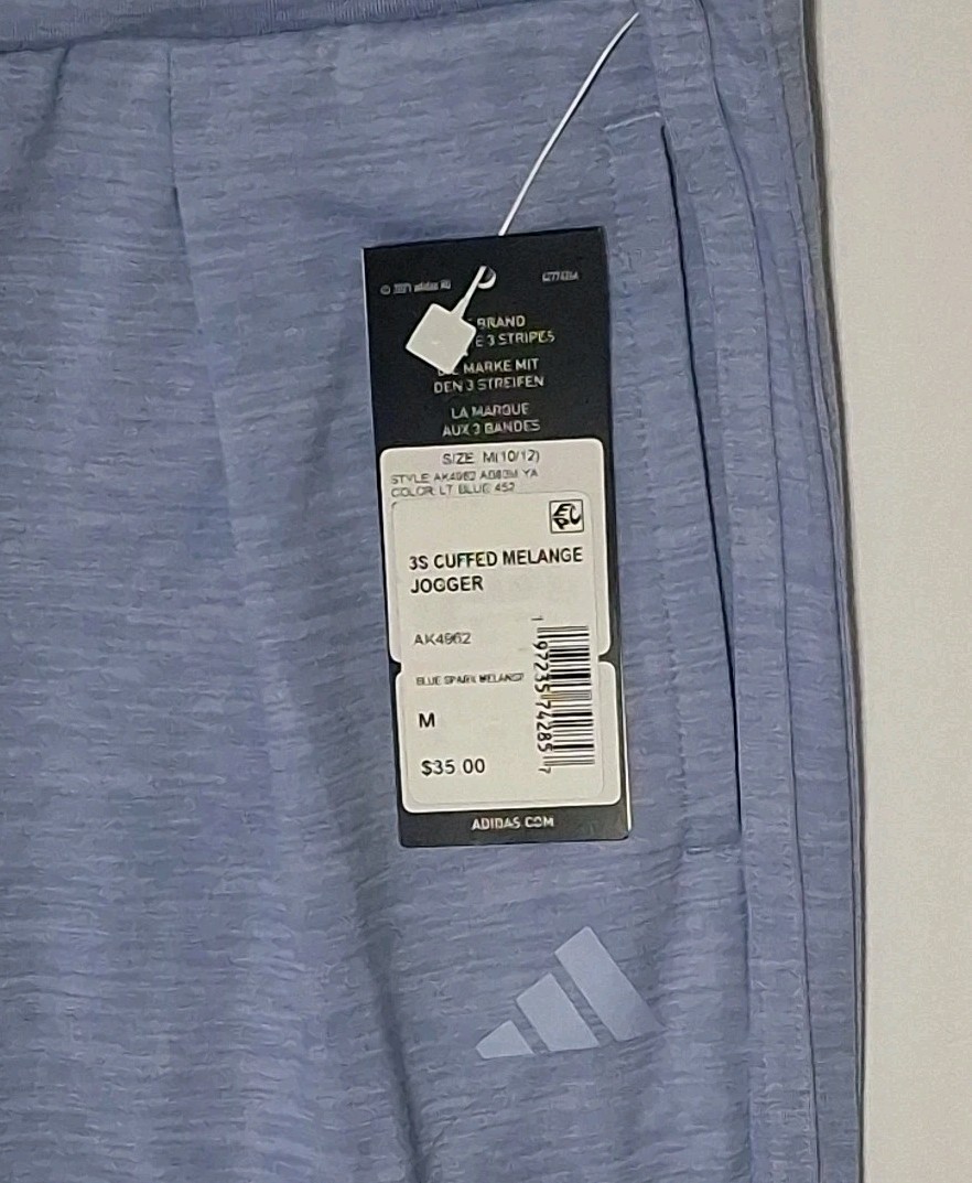 Adidas AK4962 Girls' Medium 10/12 3-Stripe Cuffed Jogger Pants, Spark Melange