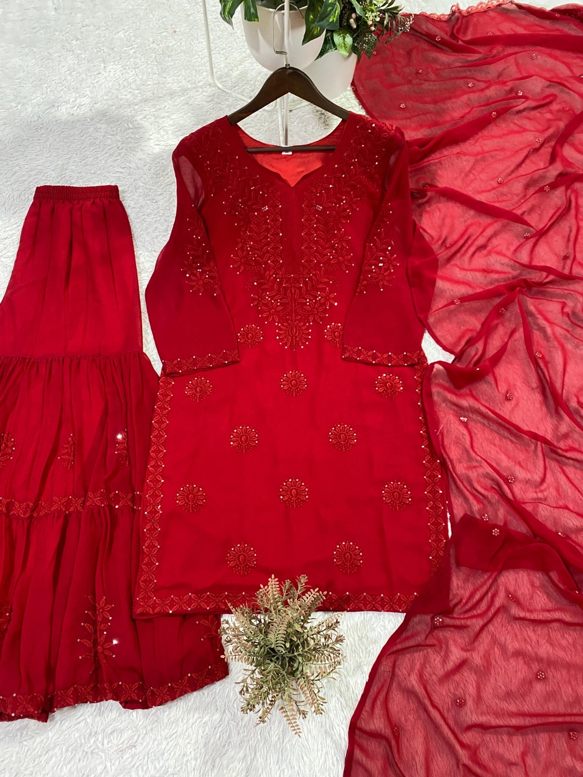 как выглядит Indian Designer Silk Georgette Palazzo With Dupatta For Wedding Party Wear фото