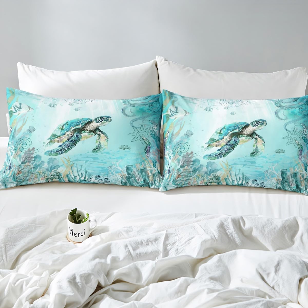 Sea Turtle Comforter Cover King, Ocean Bedding Set for Kids Boys Girls Sea Du...