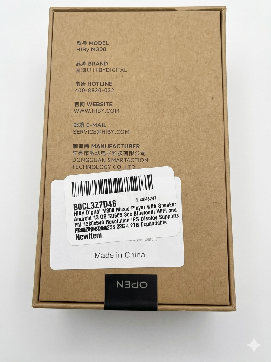 HiBy Digital M300 Blk Music Player Speaker Android 13 OS SD665 Bluetooth WiFi