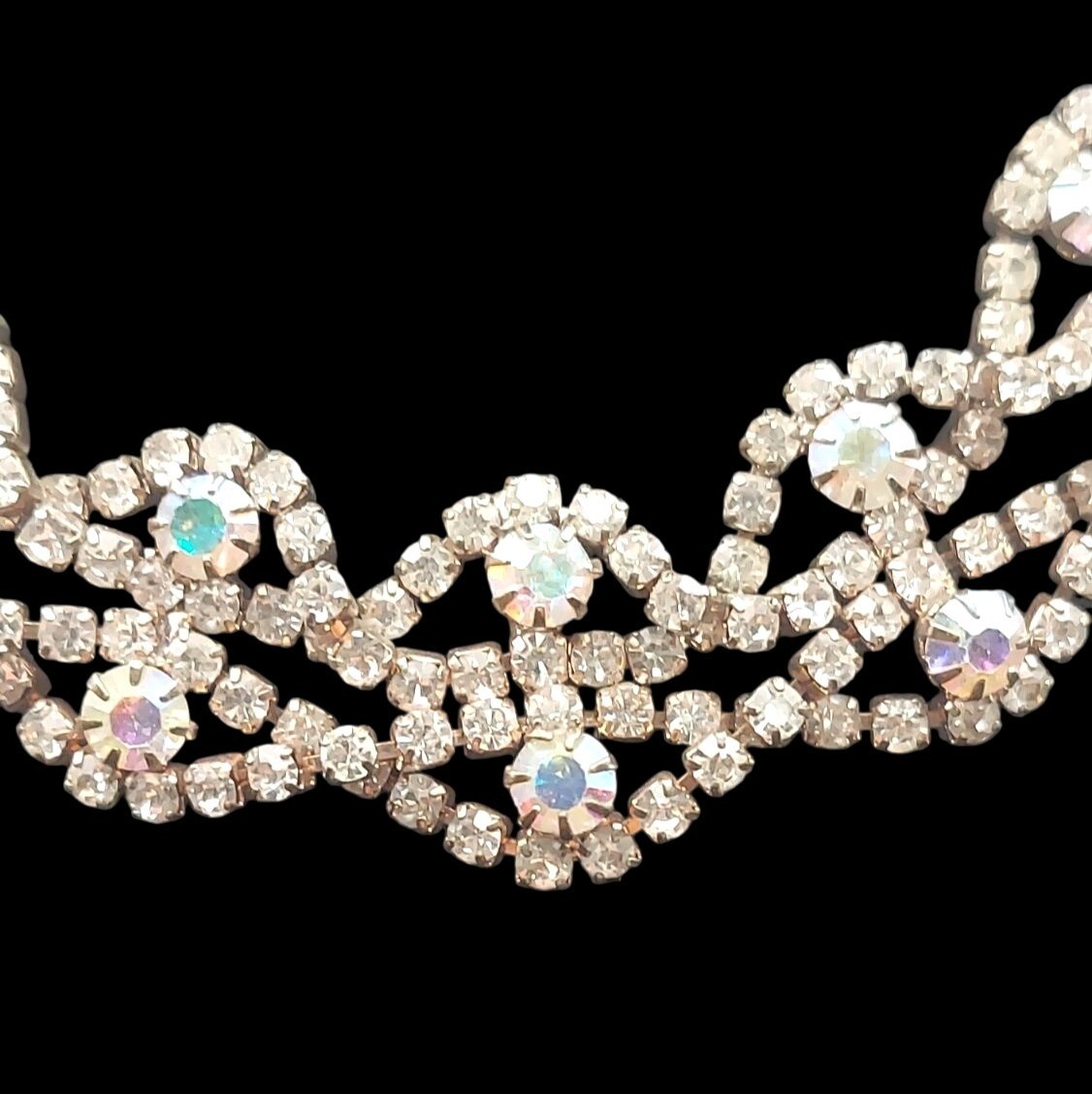 Rhinestone AB Aurora Borealis Crystal Choker 16 Adjustable Necklace Retro