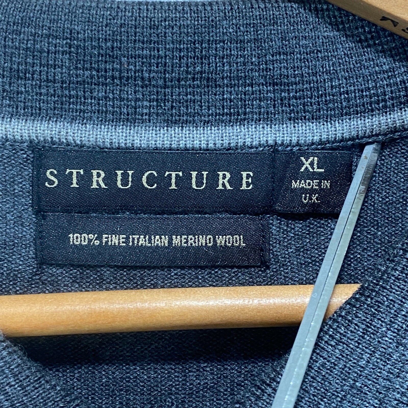 как выглядит STRUCTURE Mens Dark Gray Long Sleeve Merino Wool Polo Shirt XL фото