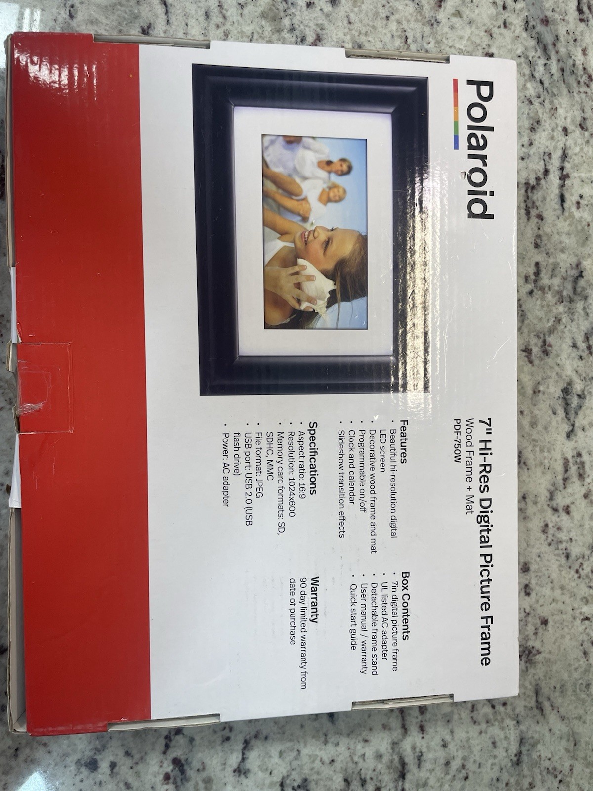 Polaroid PDF-750W 7 LED Digital Picture Frame Wood Frame 1024x600 USB SD JPEG