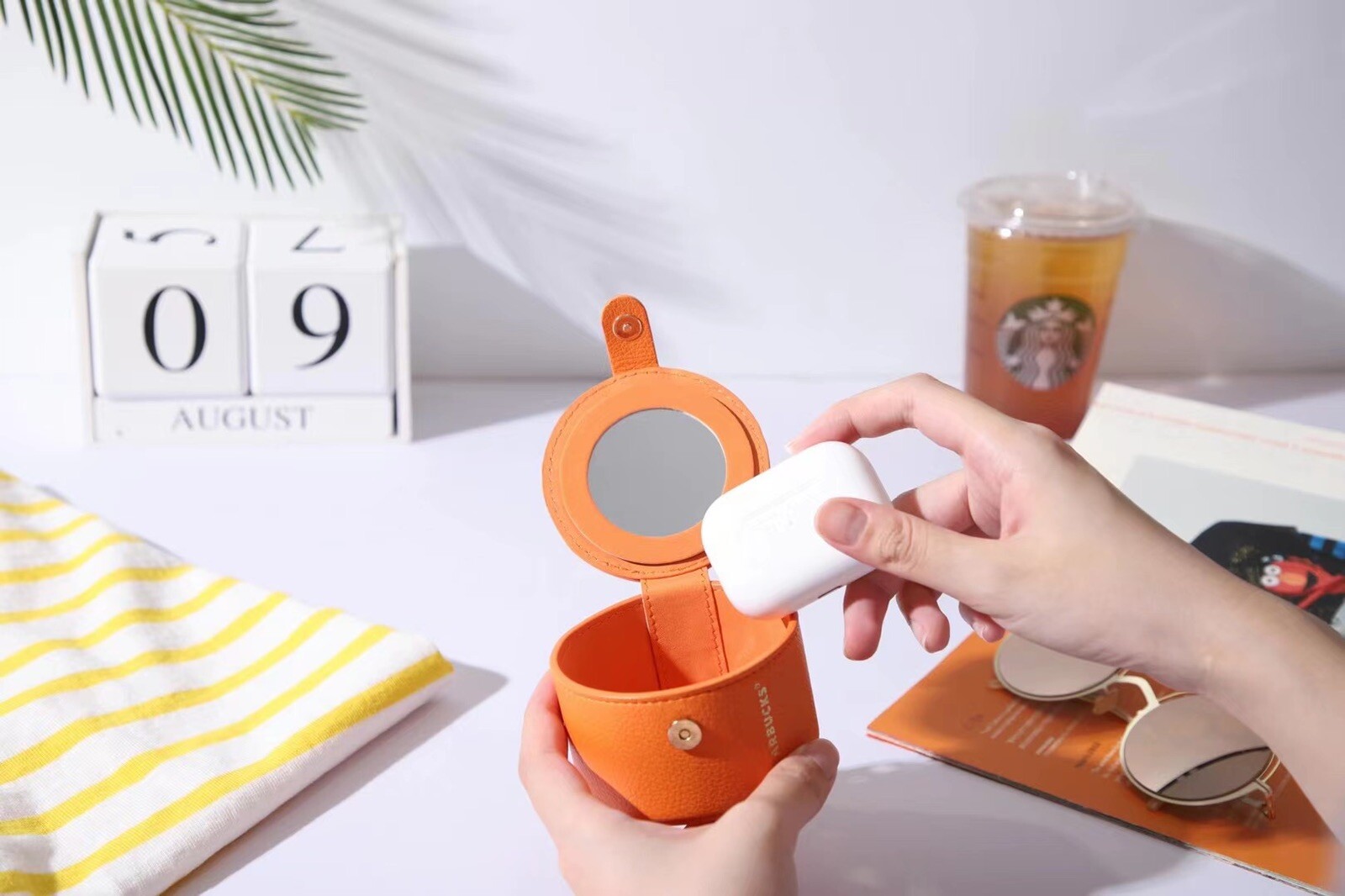 • New Starbucks 2022 China Orange Cute Bear Mini Coin Bag Storage Box