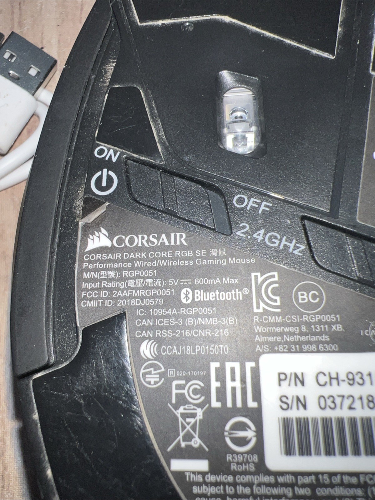 Corsair Dark Core RGB SE Gaming Mouse RGP0051 Wired/Wireless 2.4 GHz Bluetooth