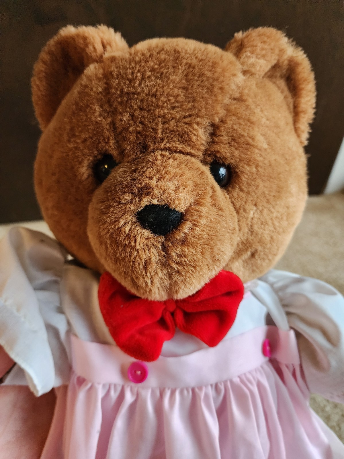 Vintage Teddy Bear 20 Brown Plush w/ Three Little Kittens Lacy Dress Outfit