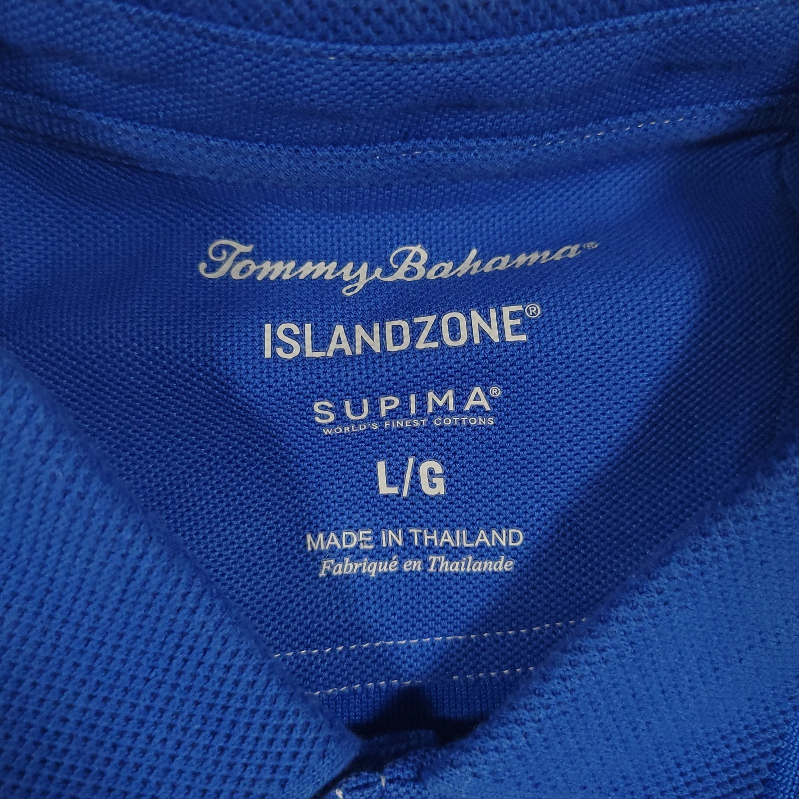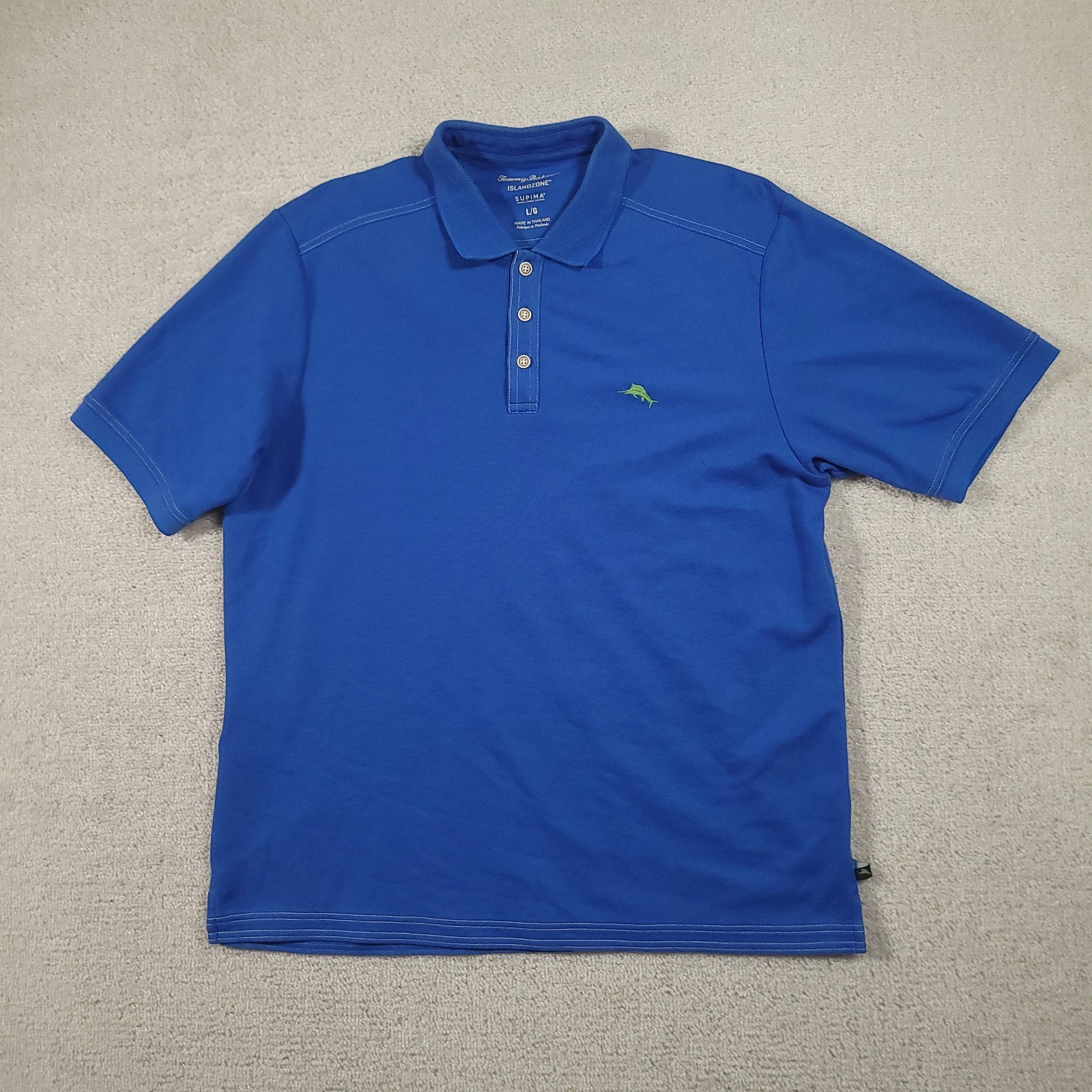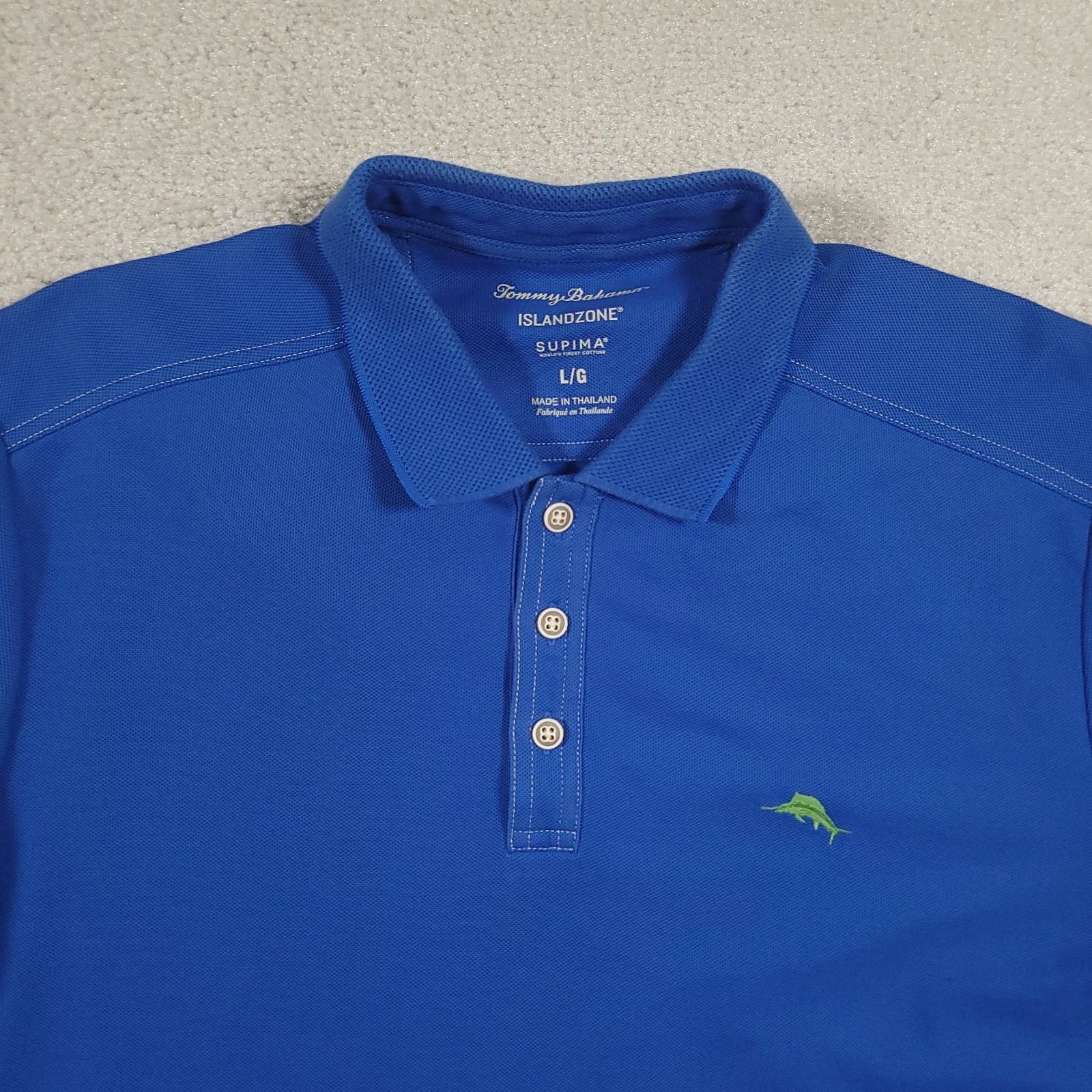 Tommy Bahama Polo Shirt Mens L Blue IslandZone Supima Golf Marlin Logo