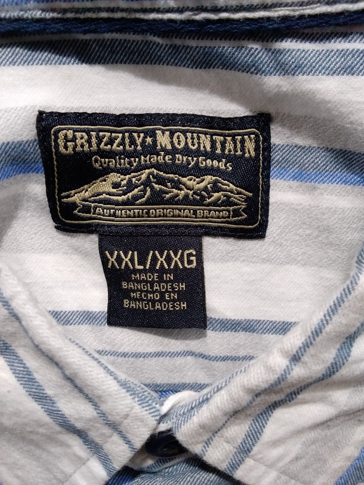Grizzly Mountain Shirt Mens XXL XL Blue White Striped Short Sleeve Button