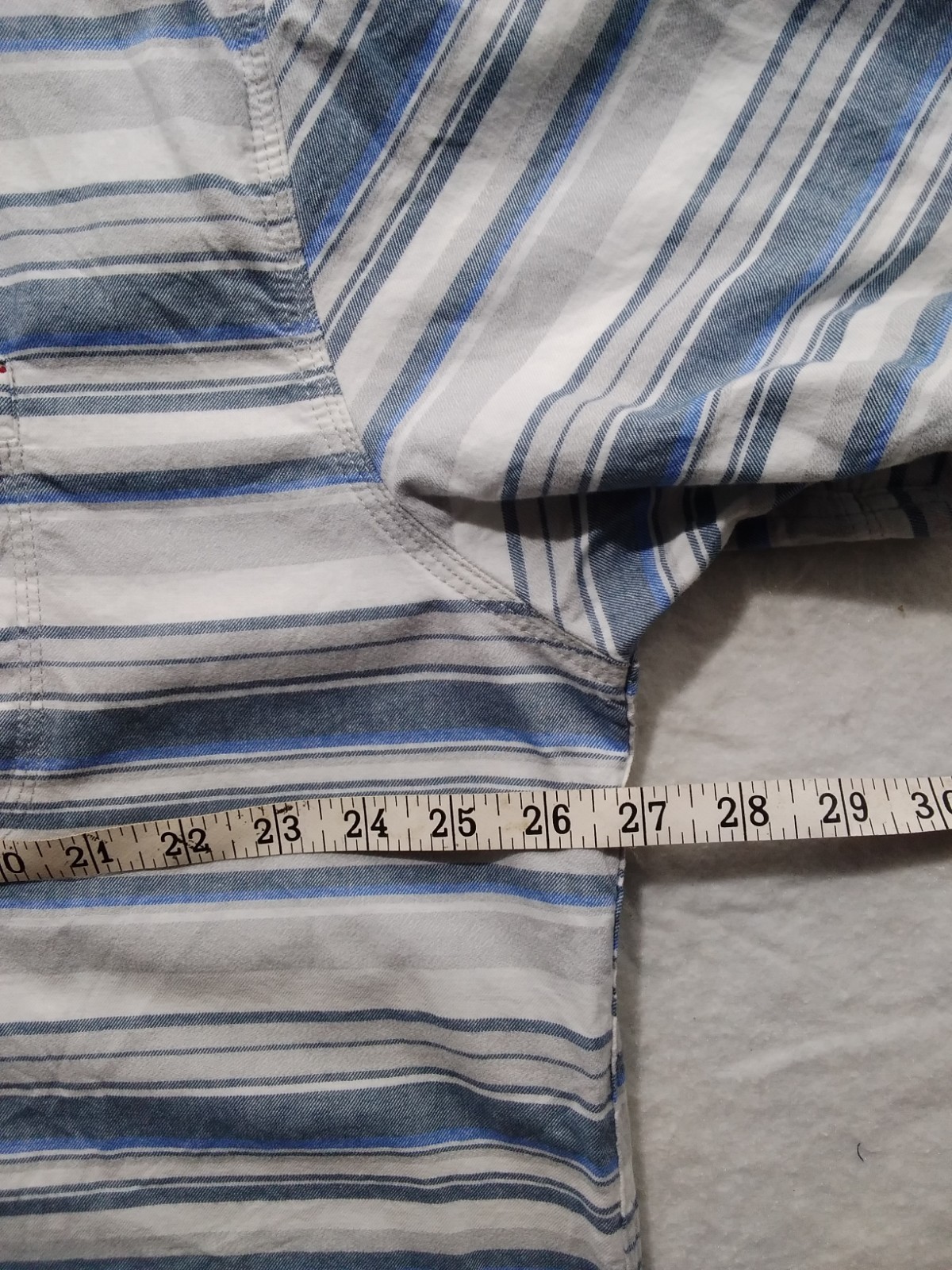 как выглядит Grizzly Mountain Shirt Mens XXL XL Blue White Striped Short Sleeve Button фото