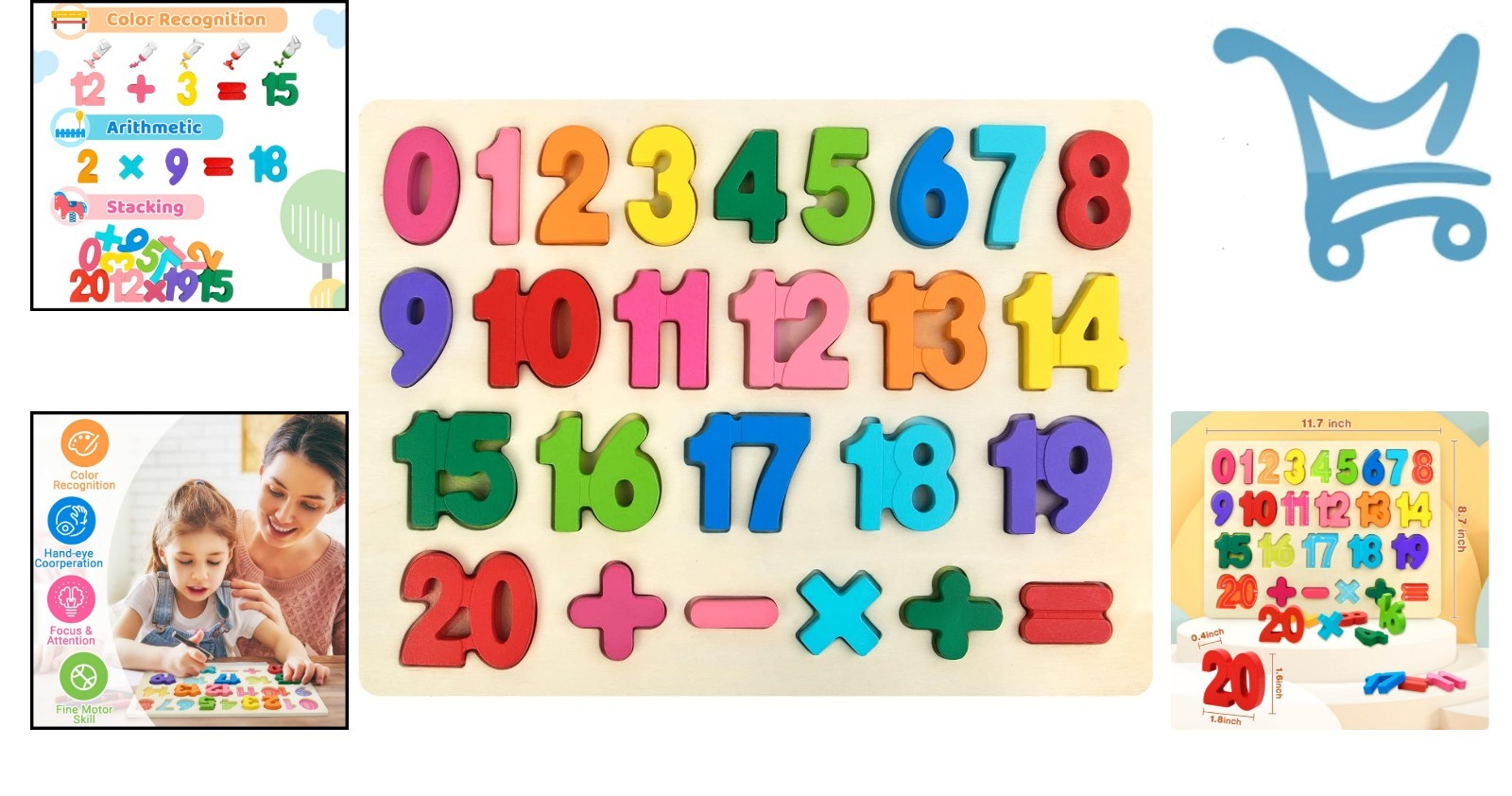 Number Puzzle Wooden Kids Educational Toy 3-5 Old Math Shapes Learning
