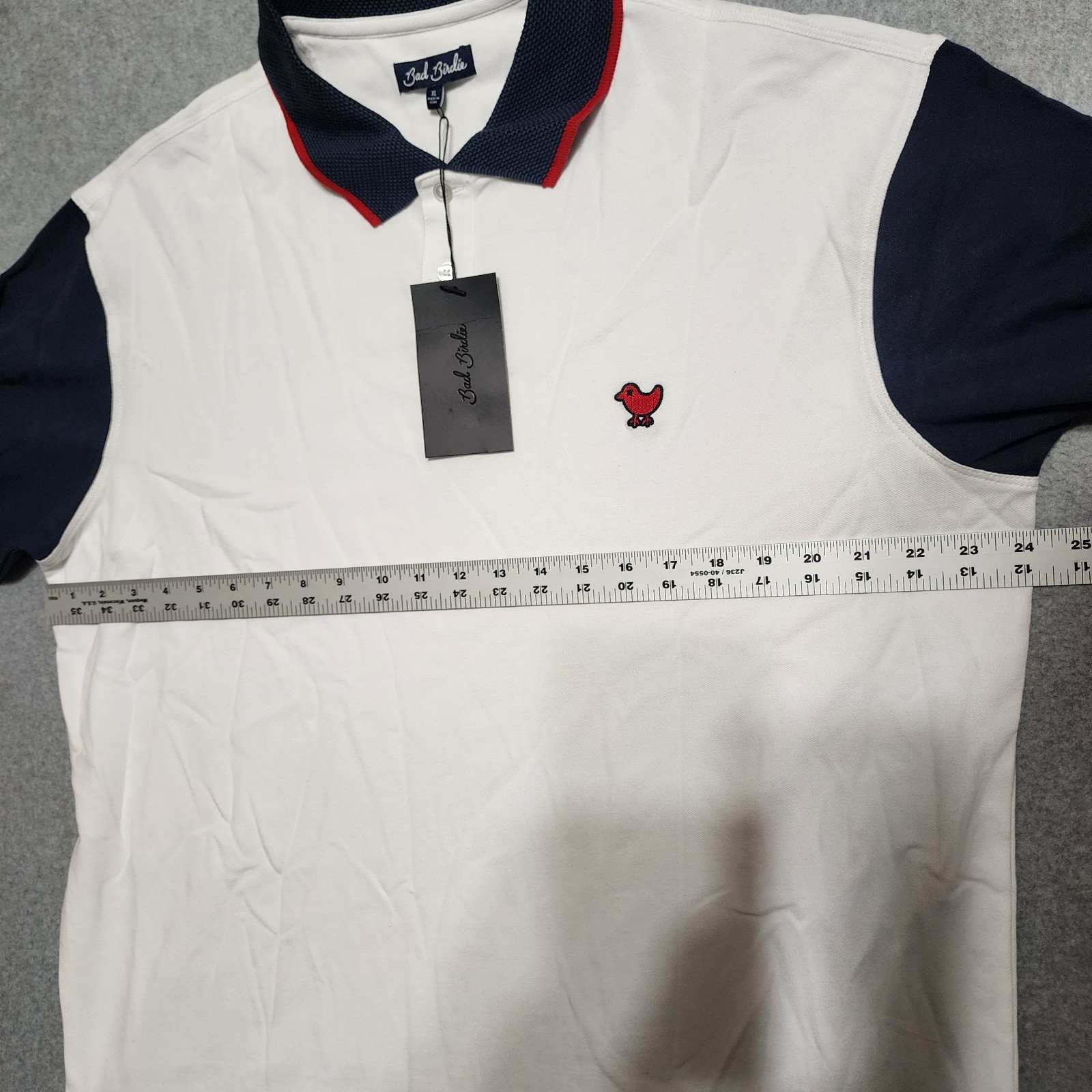 как выглядит Bad Birdie New Men s XL Pique Golf Polo Shirt White Navy Red Short Sleeve Cotton фото