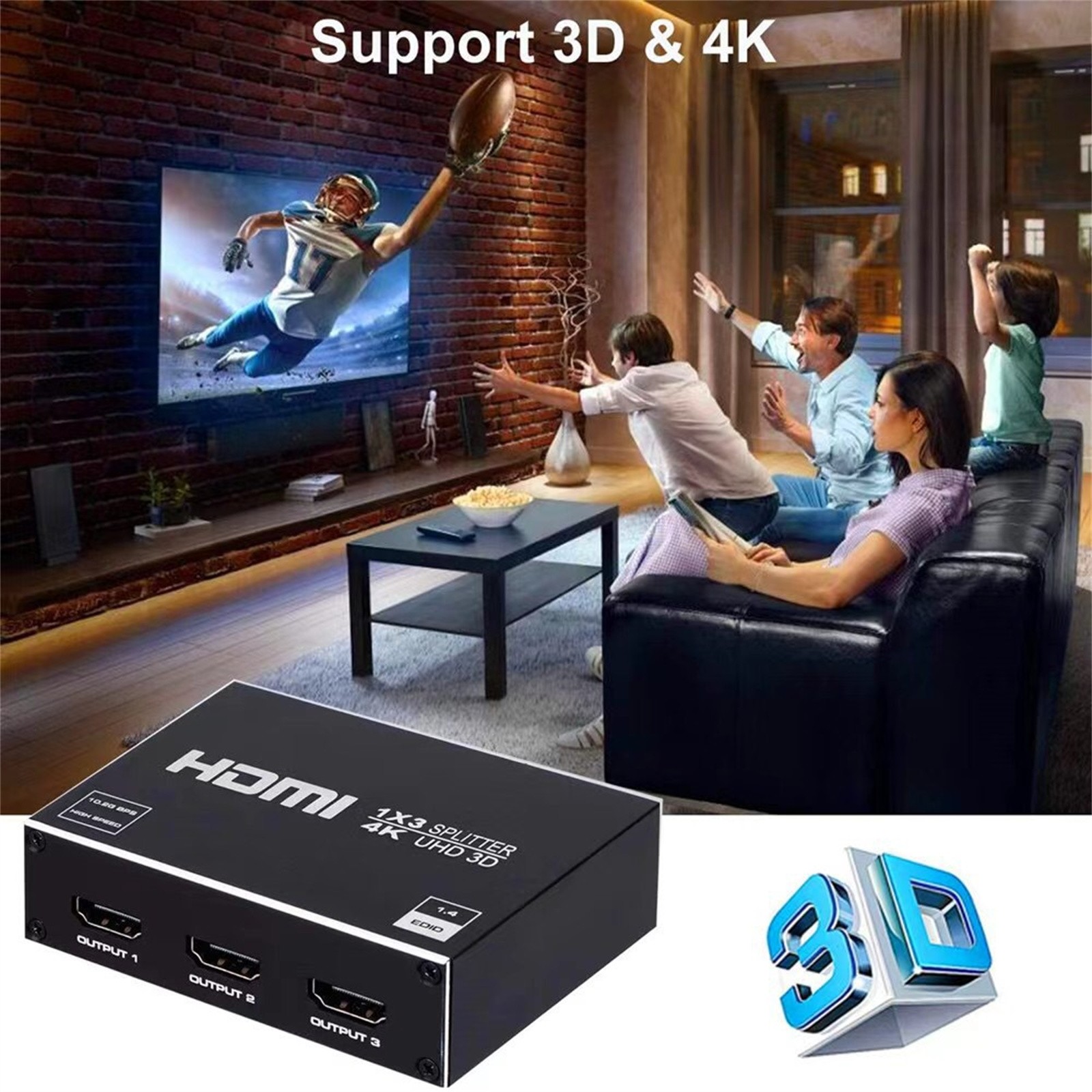 1x3 HDMI Splitter 1 in 3 Out HDMI Splitter Audio Video Splitter Box 4 Ports