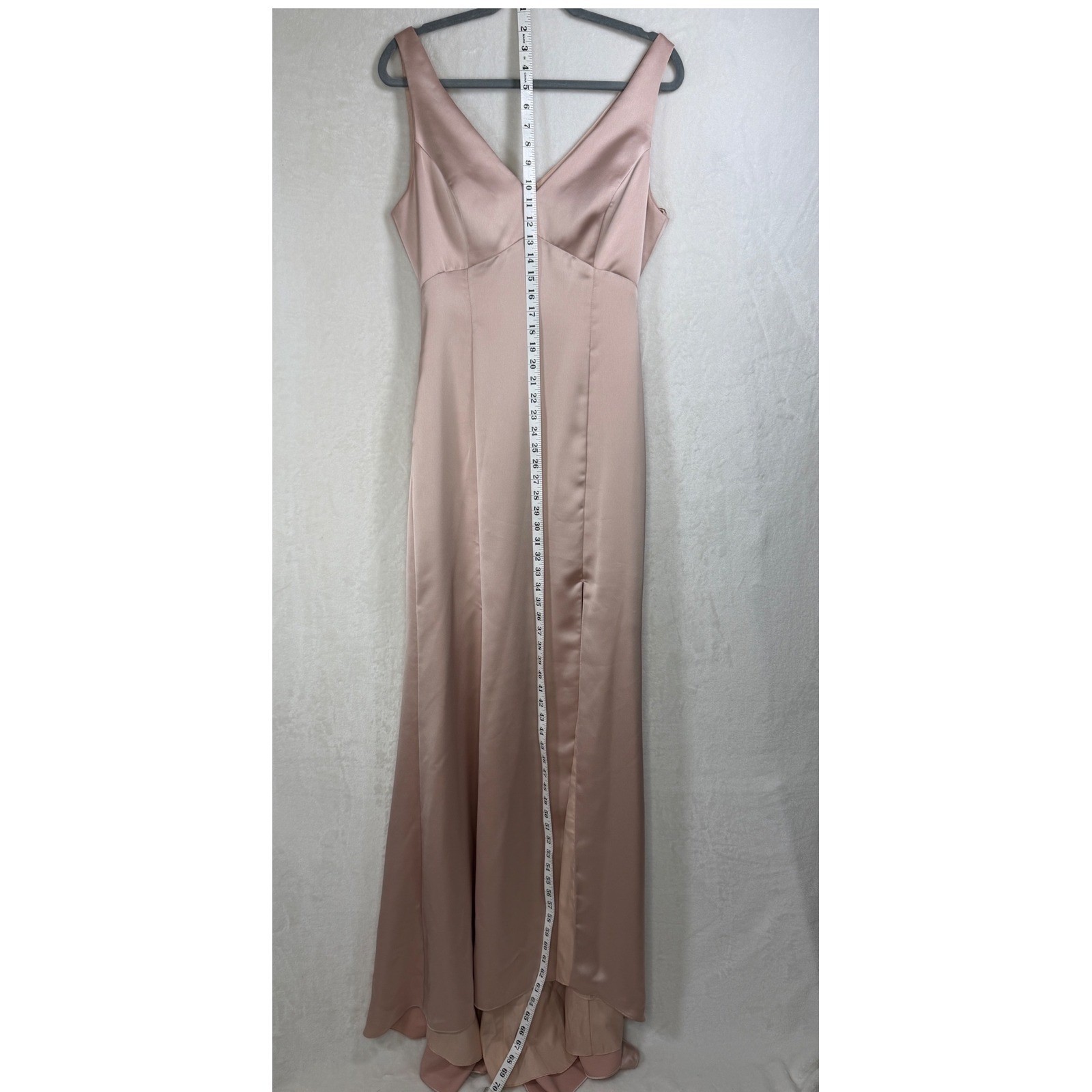 как выглядит Amsale Womens Blush Pink Satin V-Neck Open Back Formal Gown Dress GB140S Size 12 фото
