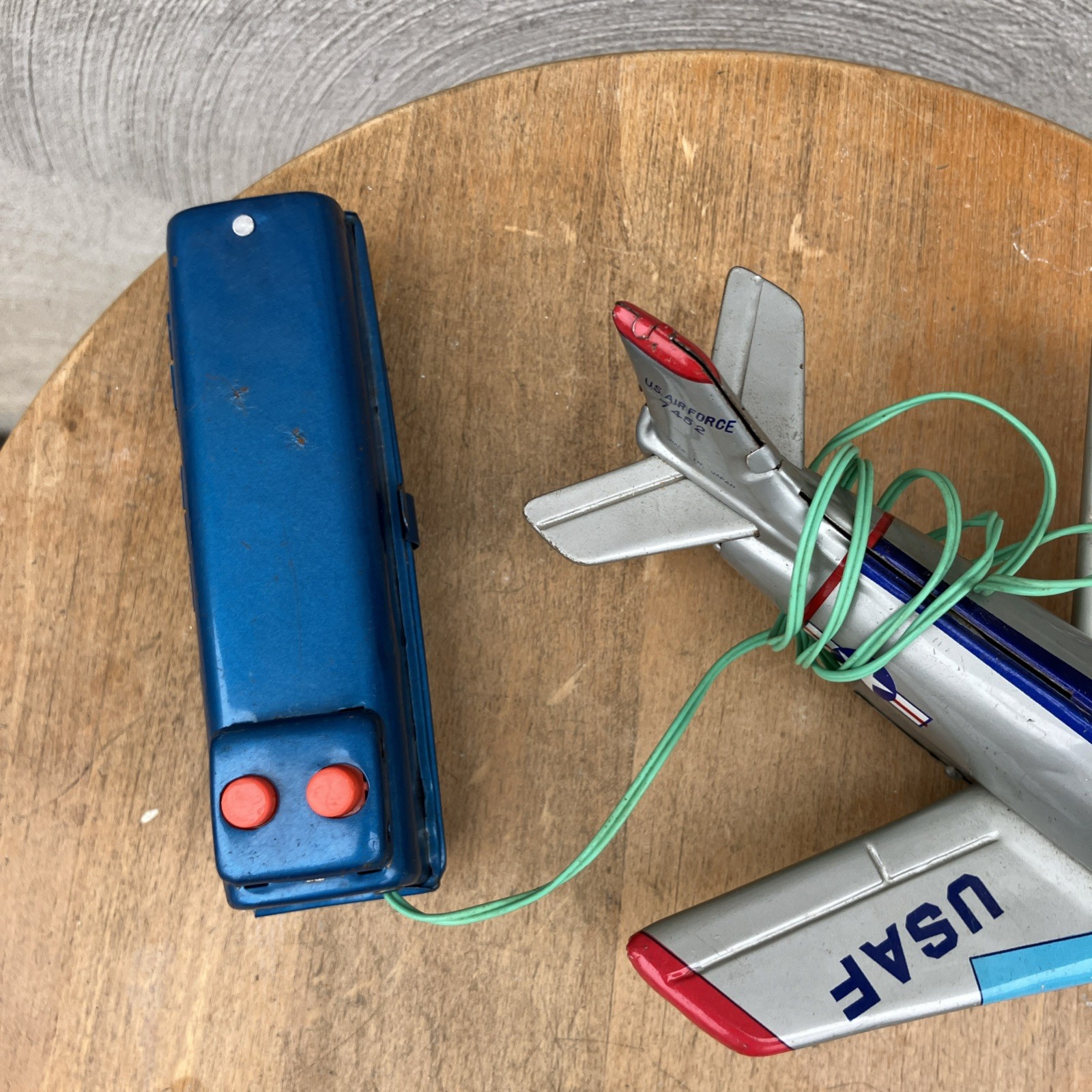 как выглядит Japan Louis Marx Tin Litho USAF Fighter Jet Battery Works Lights Up 1950s Toy фото