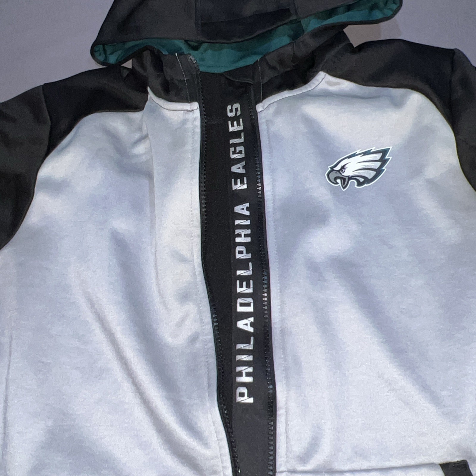 как выглядит NFL Team Apparel Philadelphia Eagles Full Zip Hoodie Light Sweater Youth L -5567 фото