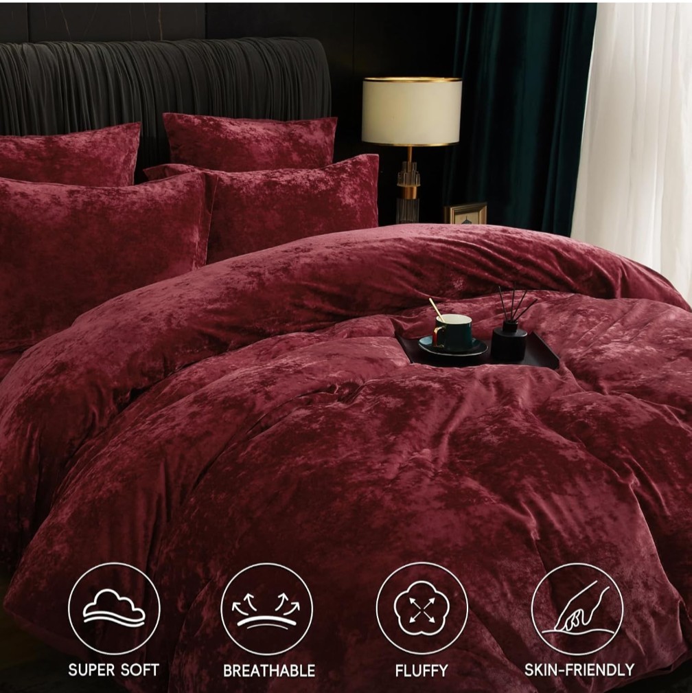 как выглядит Luxury Velvet Duvet Cover Set King Size, 3pcs Ultra Soft Breathable Modern Cozy фото