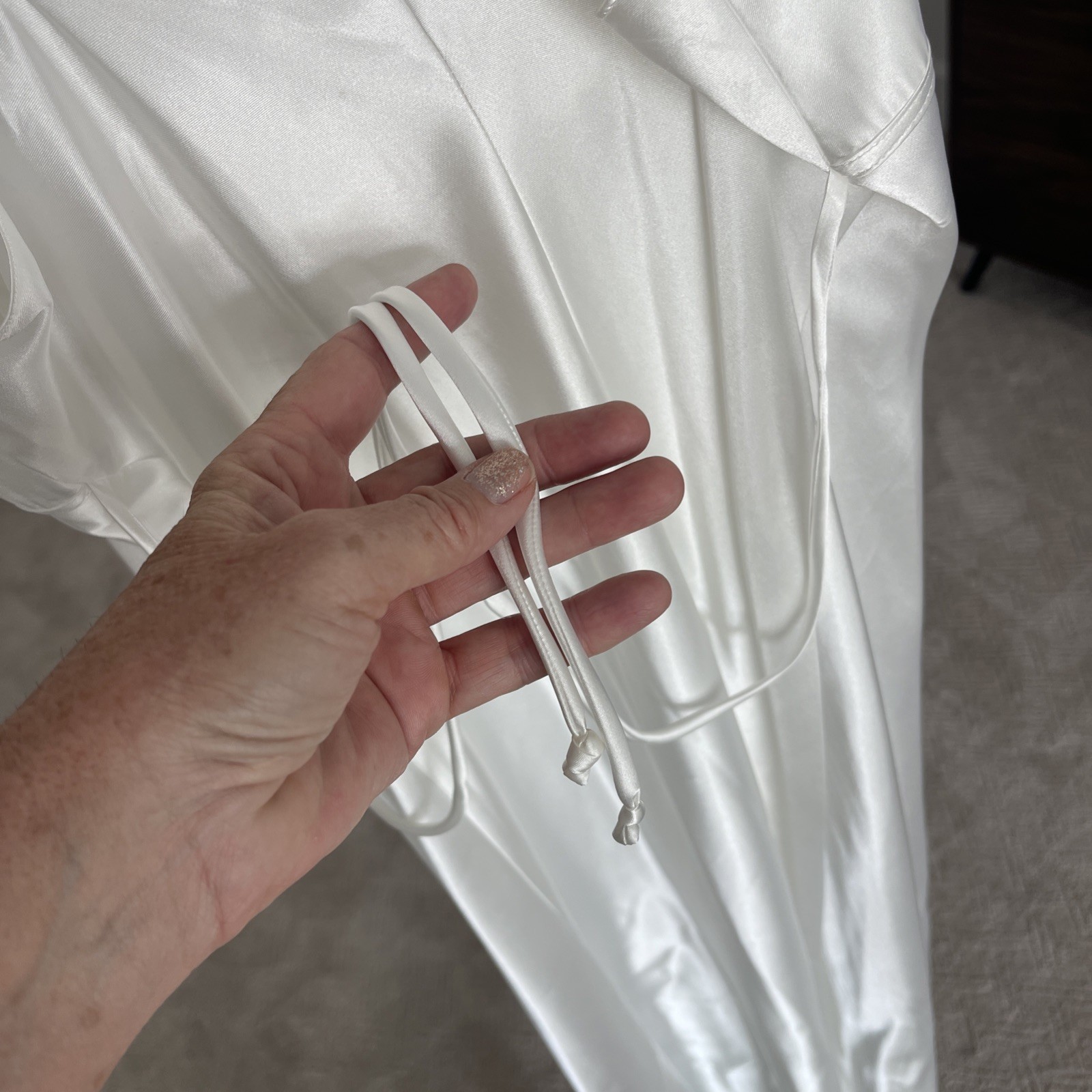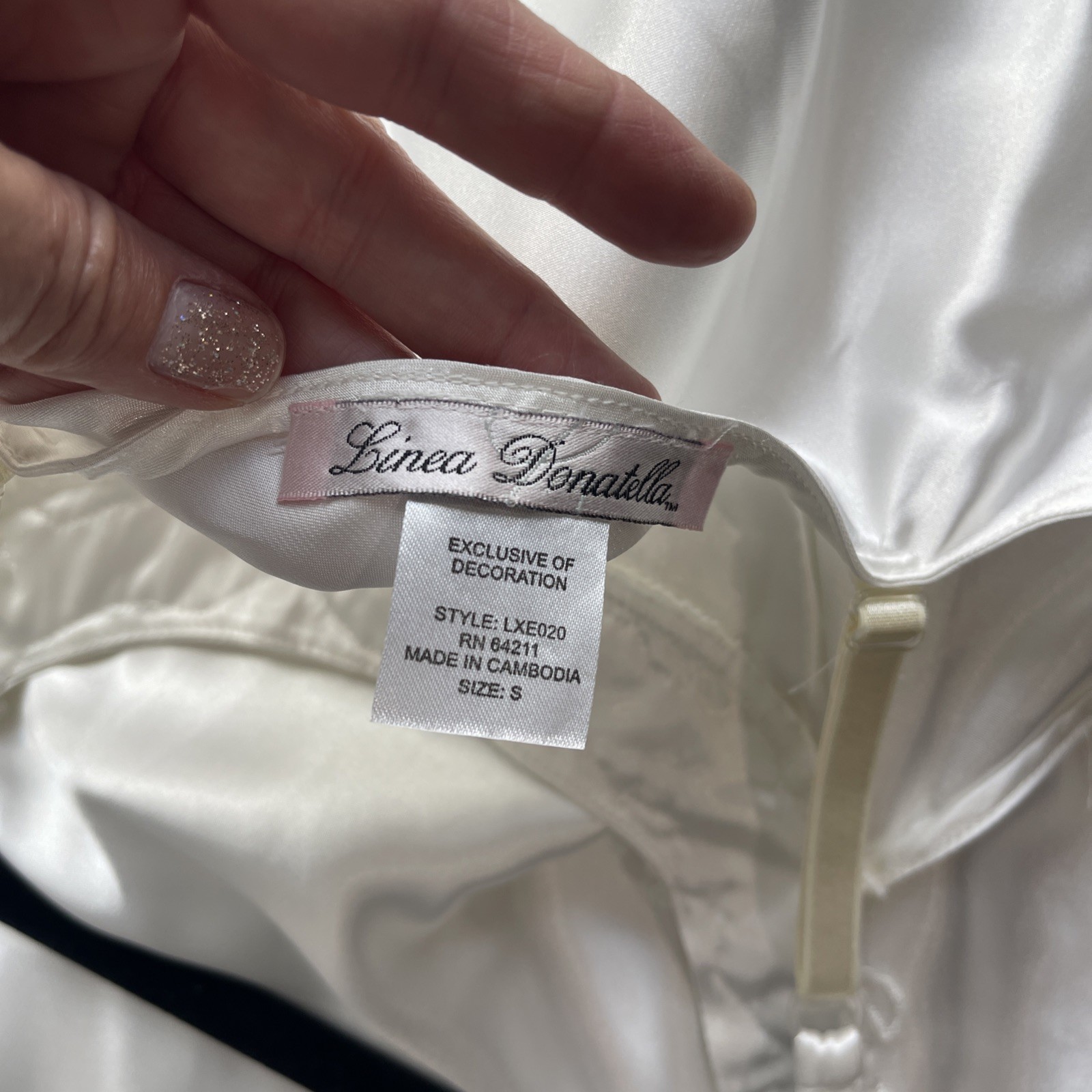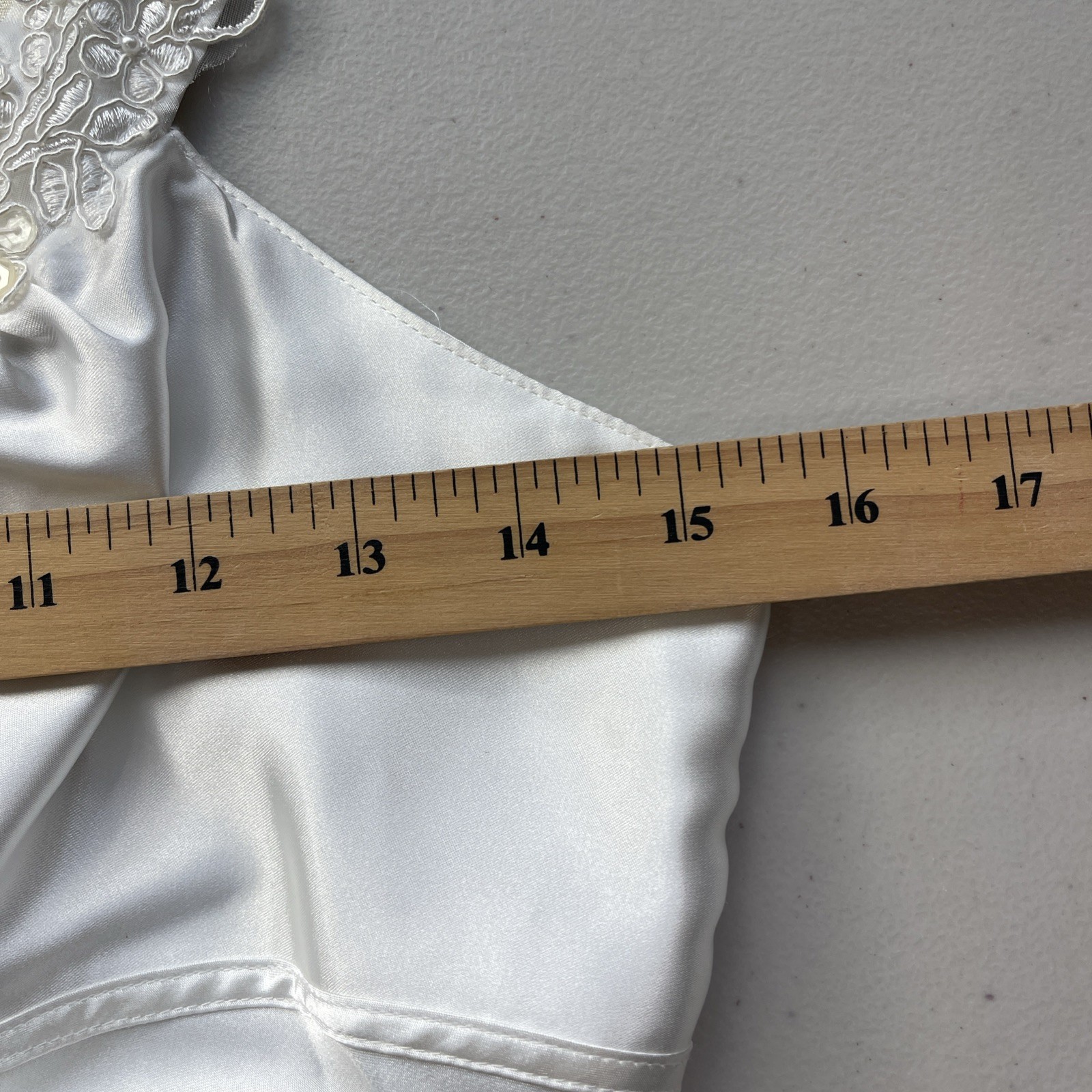 как выглядит Linea Donatella White Bridal Satin Nightgown Lace Pearls Empire Waist Size S фото