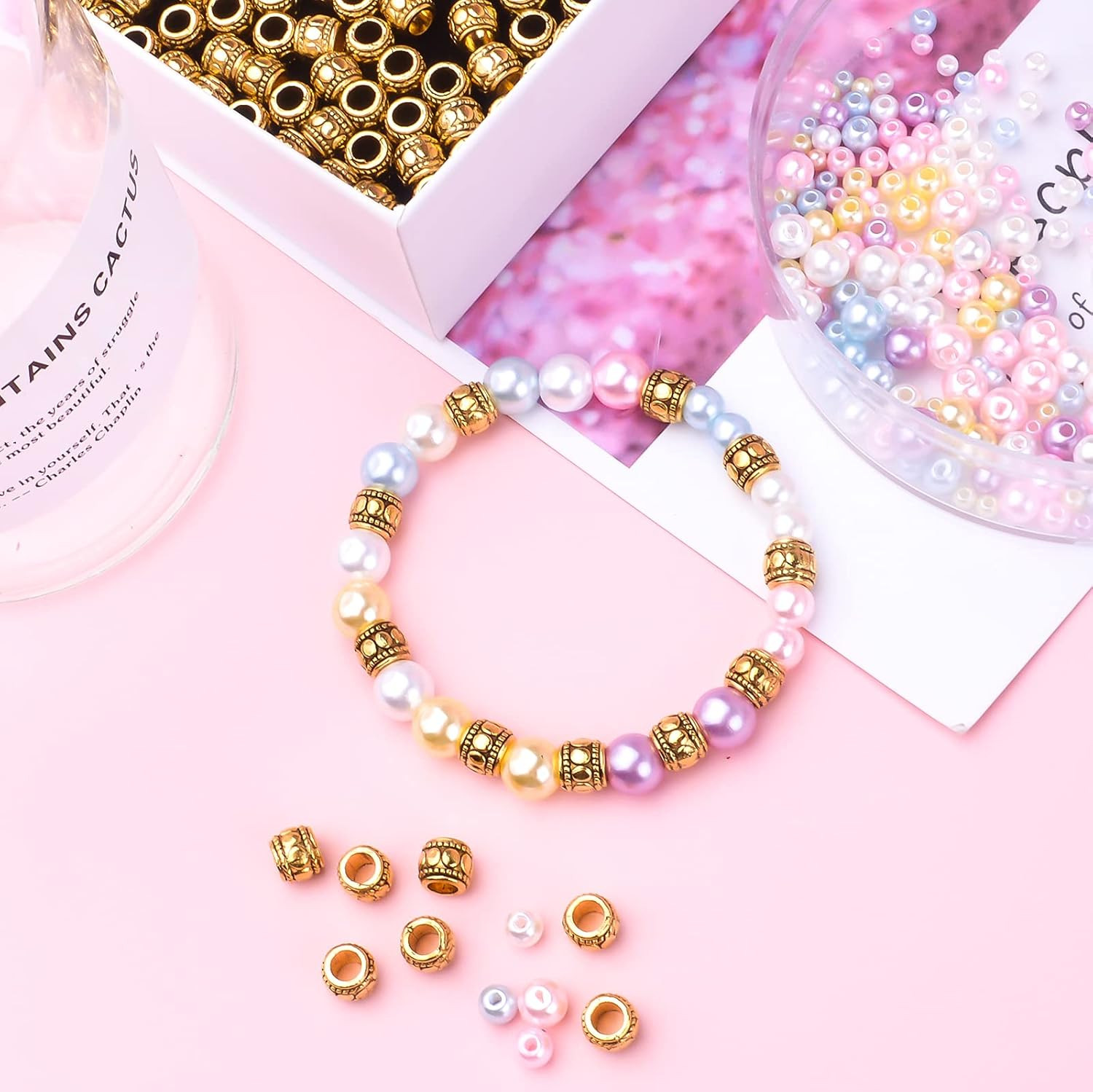 как выглядит 100Pcs Antique Gold Large Hole Spacer Beads Tibetan Alloy European Barrel Beads фото