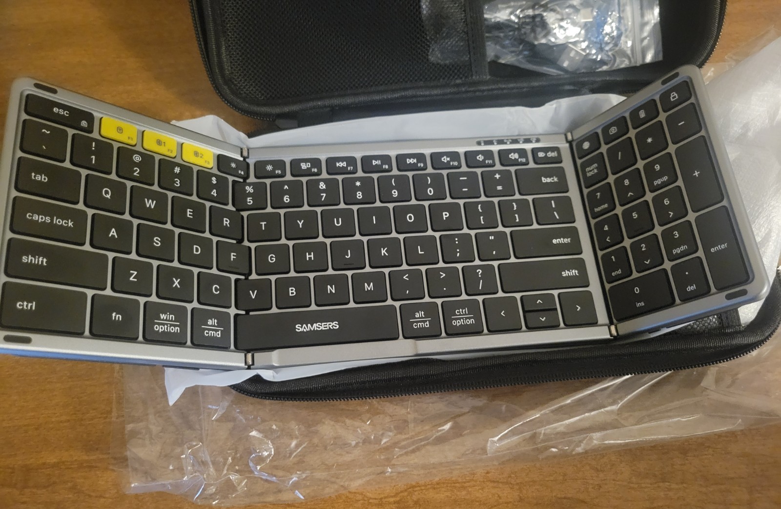 как выглядит Tri-Fold Portable 5.0 Bluetooth Keyboard Mouse Combo Travel iOS Android Windows фото