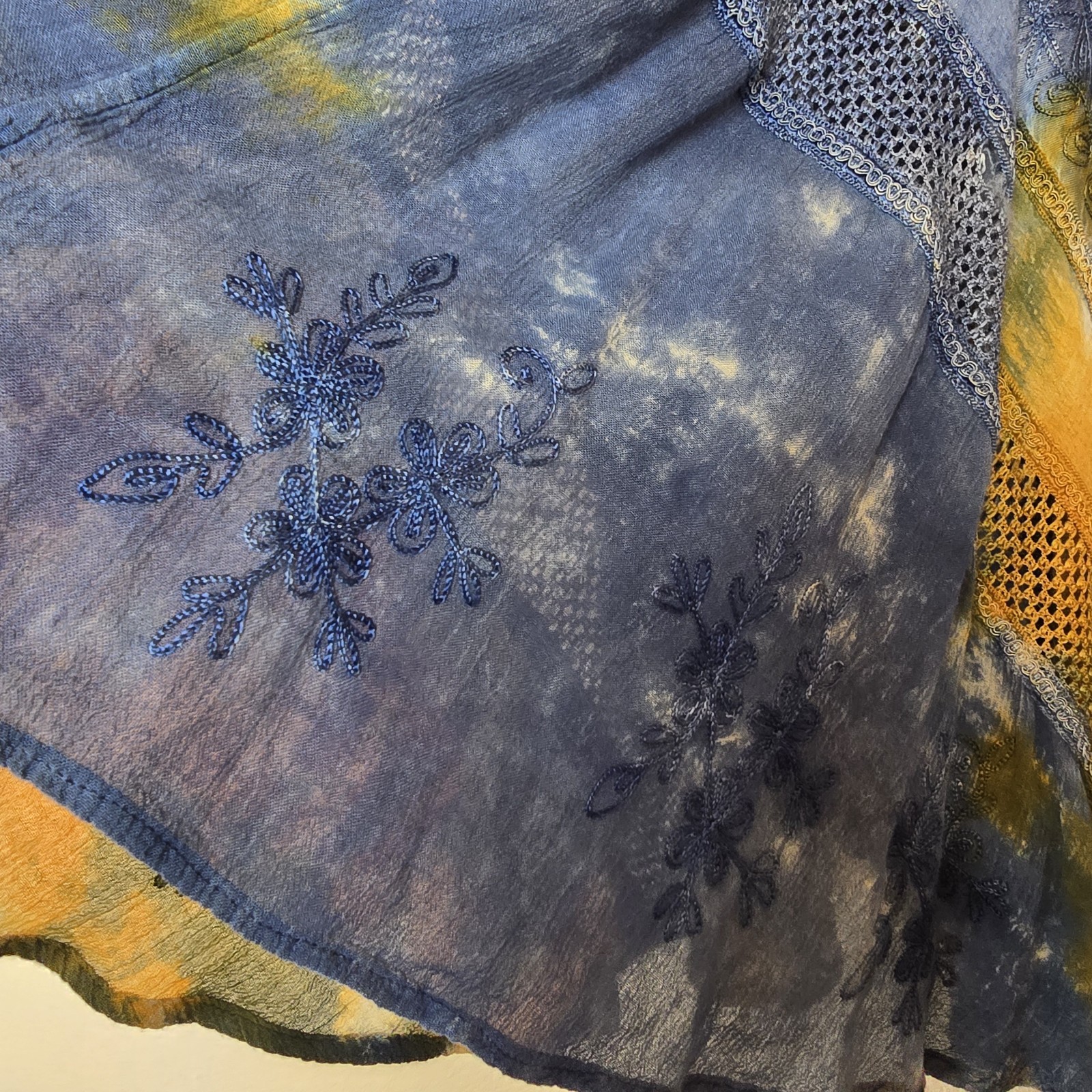 Women's O/S Tie Dye Maxi Skirt Boho Embroidered Hippie Gypsy Drawstring Festival
