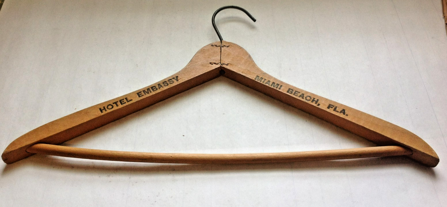 как выглядит Hotel Embassy Miami Beach Florida Vintage Wood Clothes Hanger Clothier Tailor фото