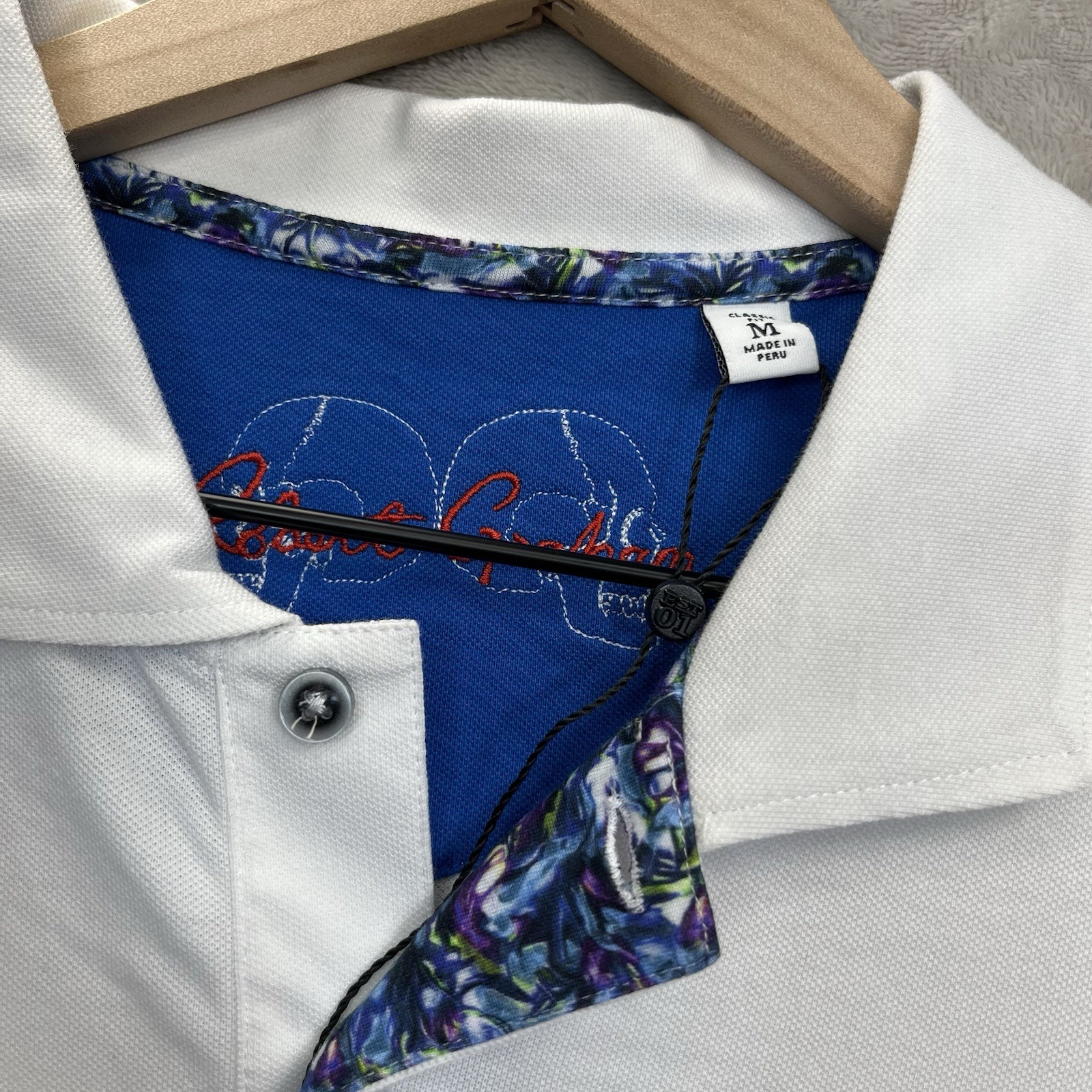 Robert Graham Polo Shirt Mens M White Short Sleeve Collared Classic Fit NWOT