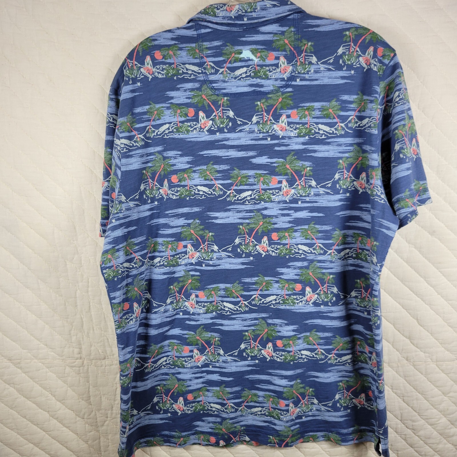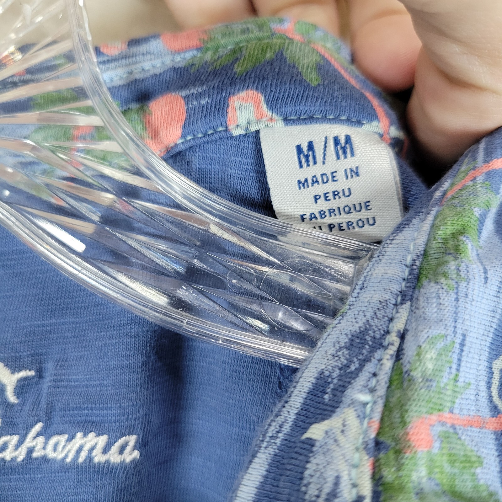 Tommy Bahama MARLIN Supima Cotton Short Sleeve Polo Shirt Medium Blue Floral