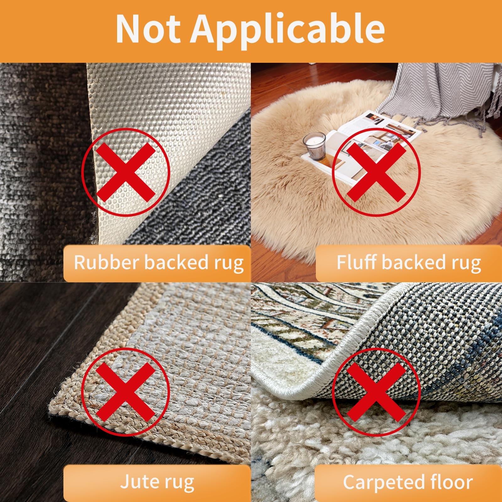 Rug Pad Grippers Double Sided Reusable Anti Slip for Hardwood 12 Pcs