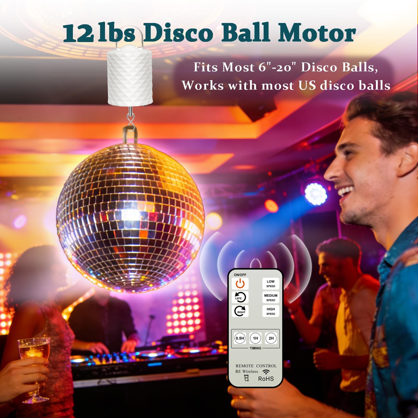 Disco Ball Motor with Remote, 1-30 RPM 3 Speeds 2-Way Rotation, 0.5/1/2H Ti...