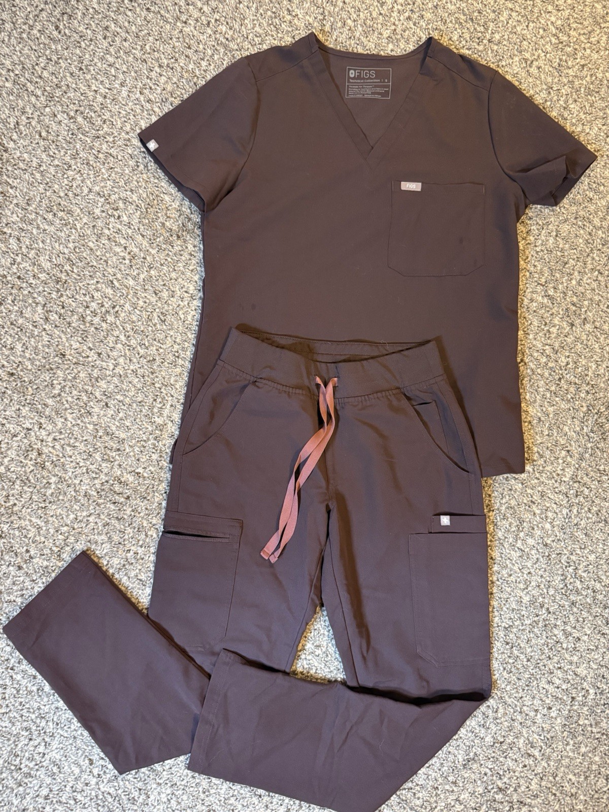 как выглядит FIGS Catarina Scrub Top XS Zamora Jogger Pants S Set Burgundy фото