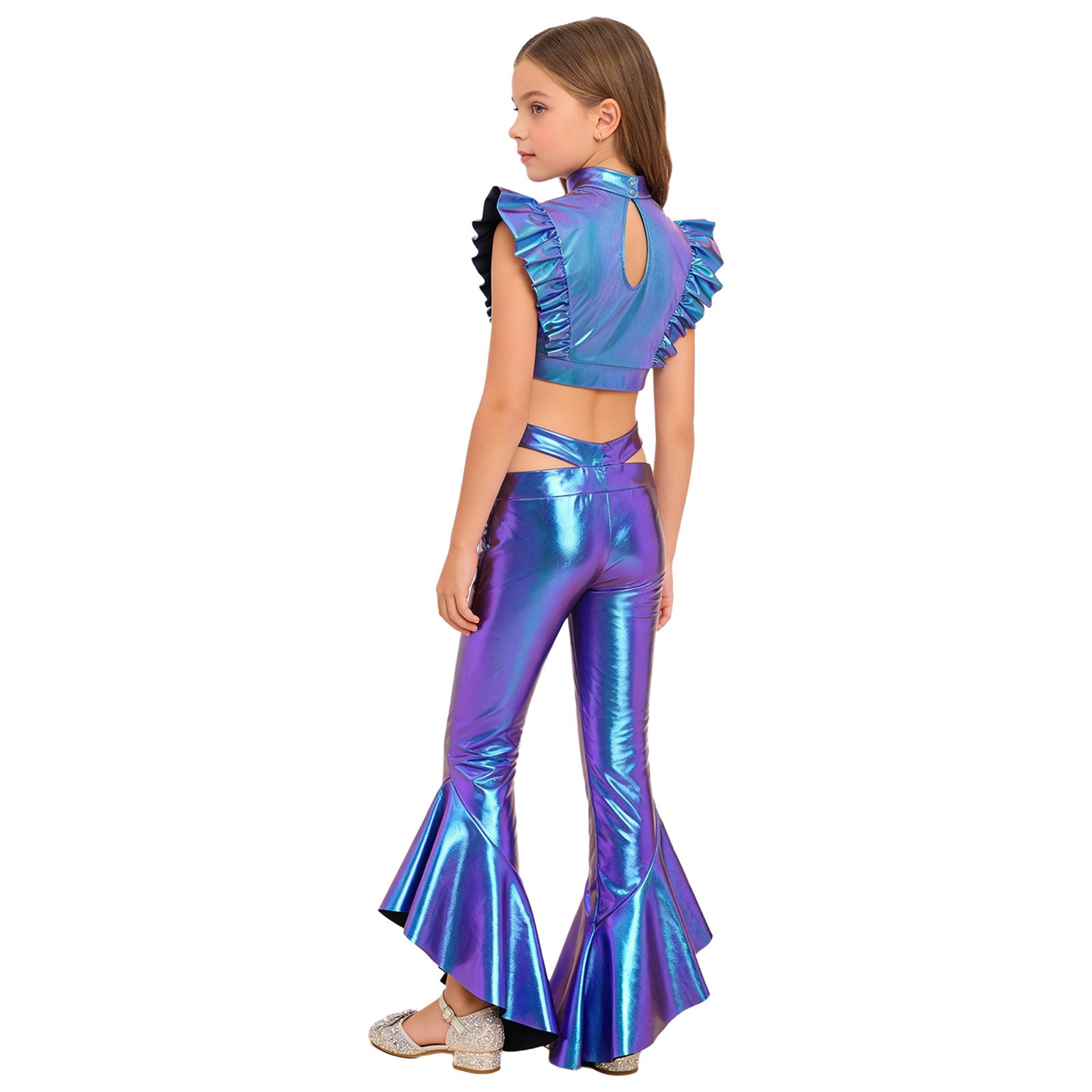 как выглядит Girls Dancewear Ballet Set Samba Outfit Crop Top Costume Mesh Patchwork Modern фото