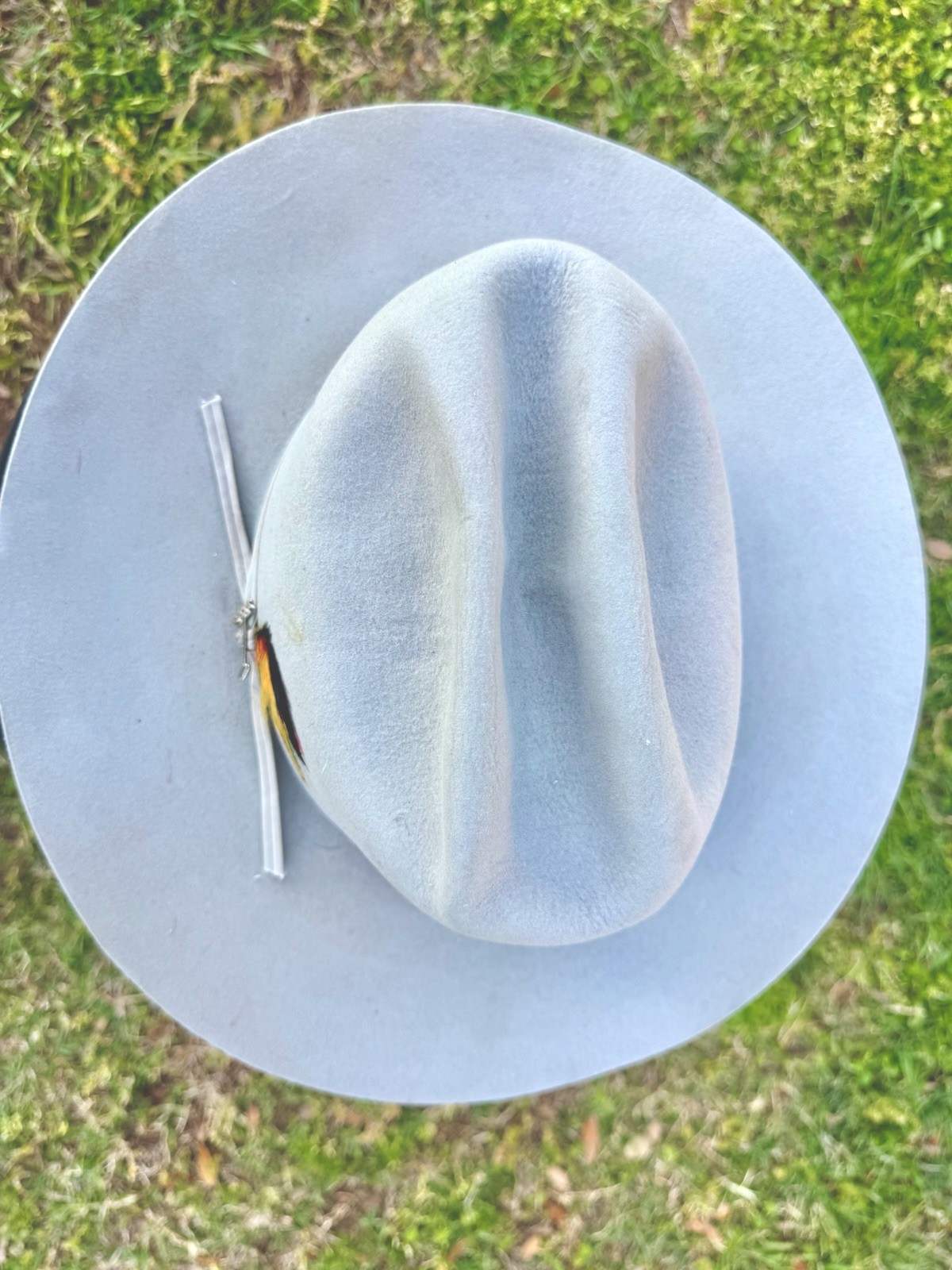 Stetson Rancher 5X Beaver Hat Gray MIst Felt Feathers Ribbon JBS Pin Sz 7.5 GUC