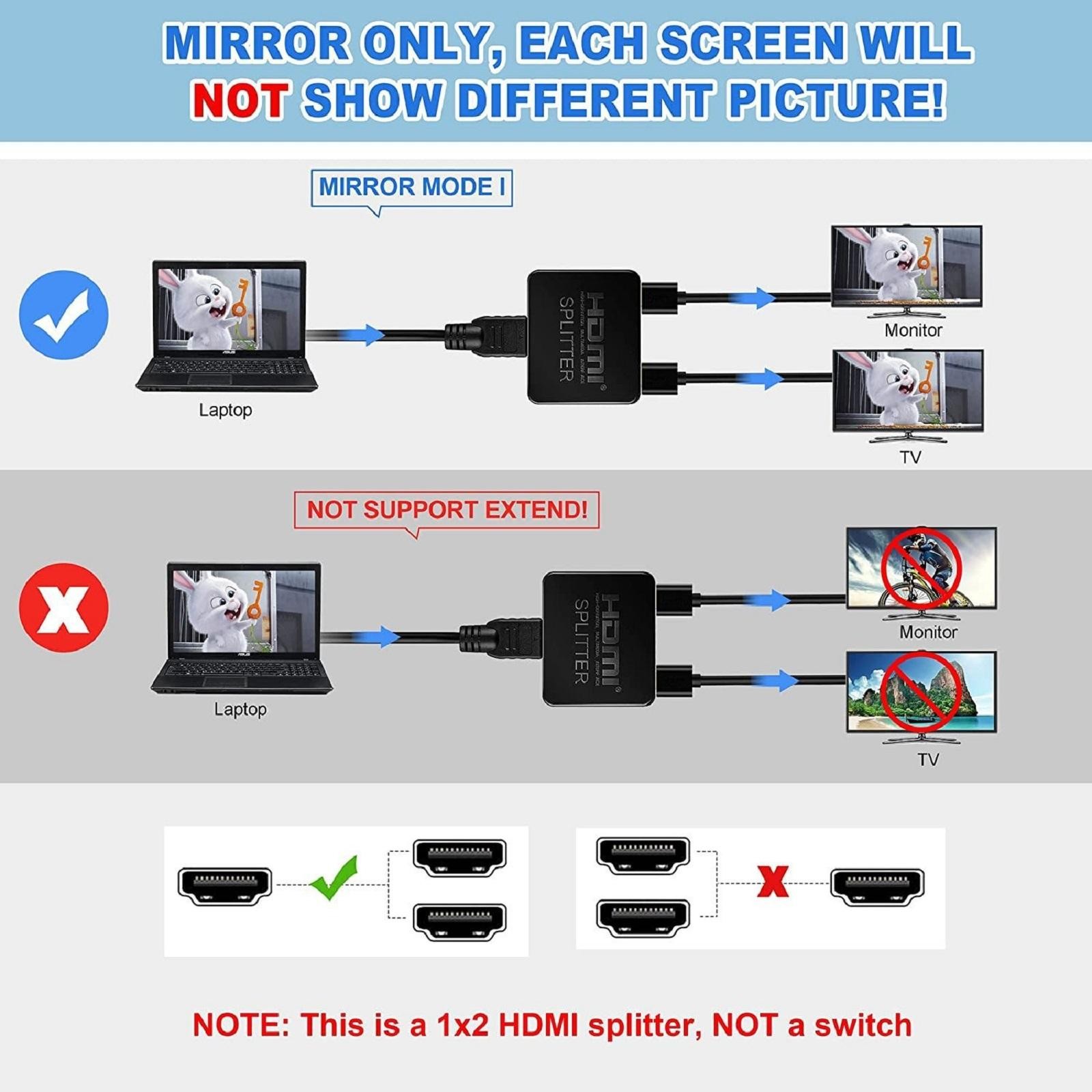1 in 2 Out HDMI Splitter Video Distributor Amplifier For HDTV Box PC Monitor