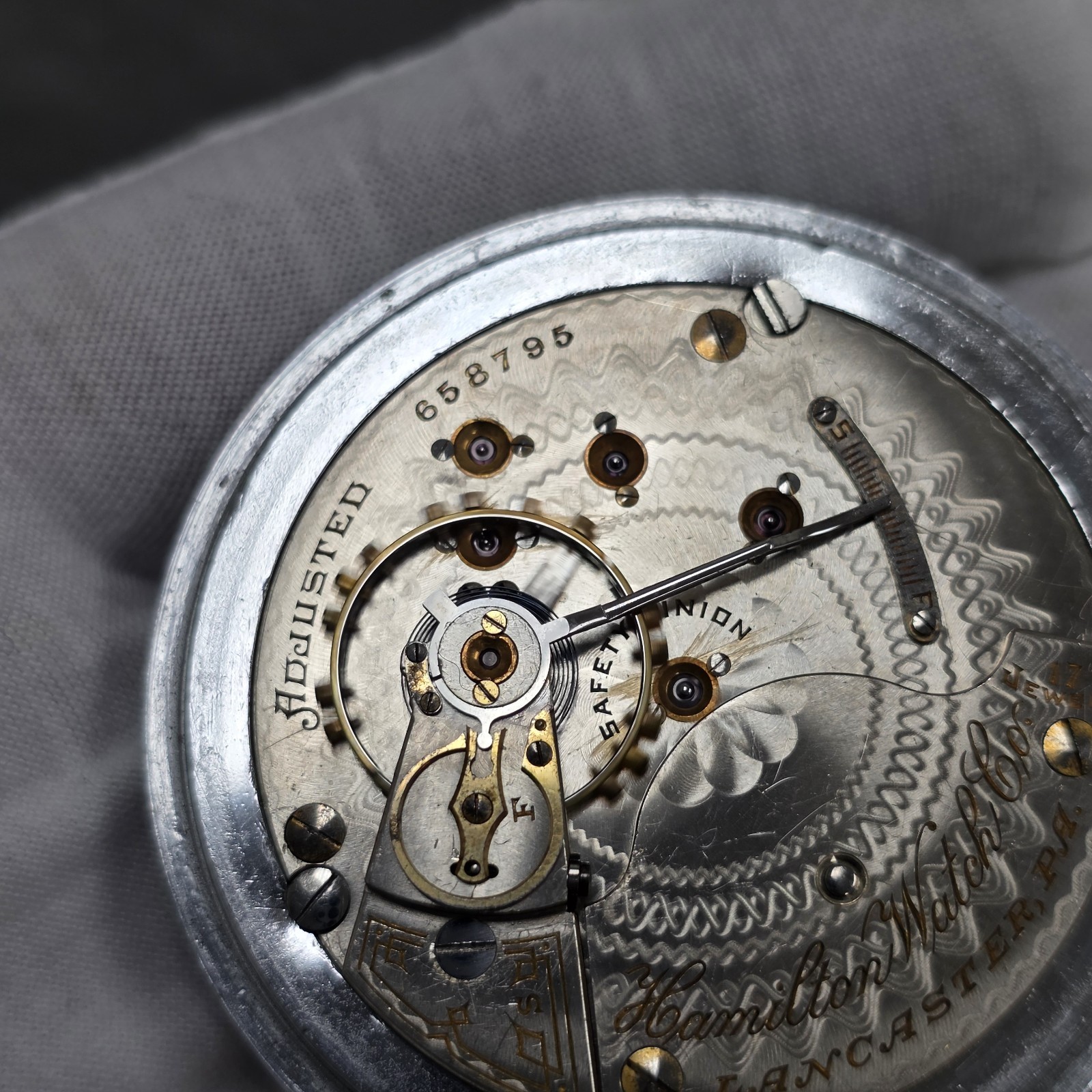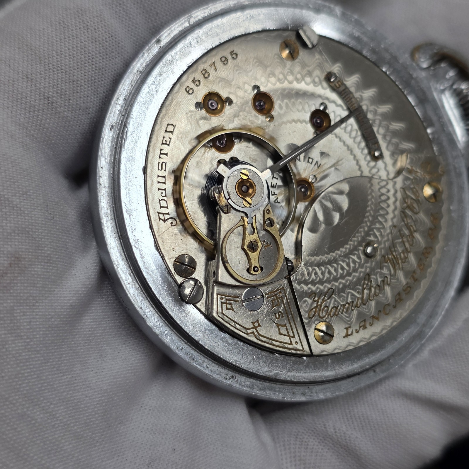 как выглядит ANTIQUE 1910 18s 17 JEWEL HAMILTION POCKET WATCH MODEL 2 - GRADE 927 SIDEWINDER фото