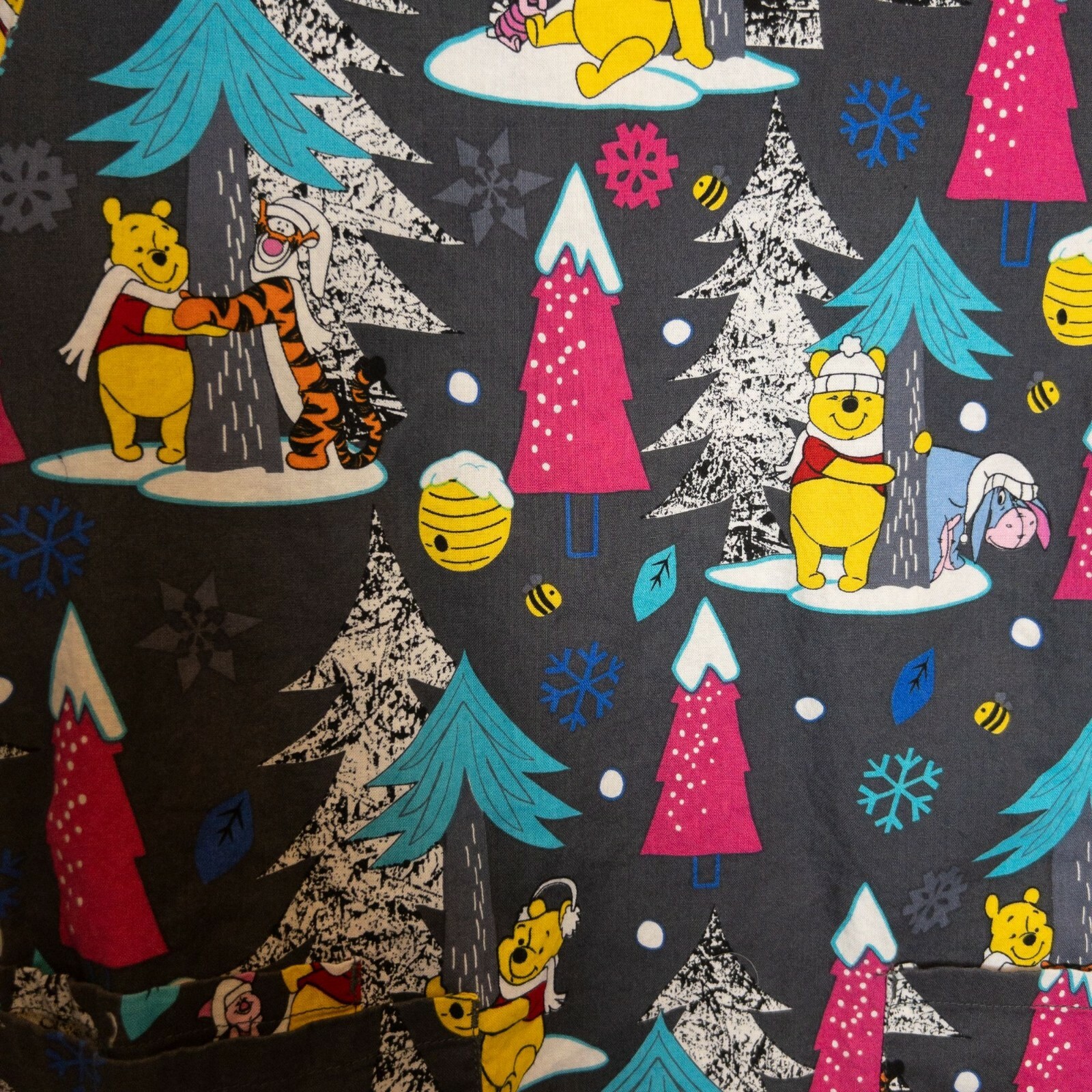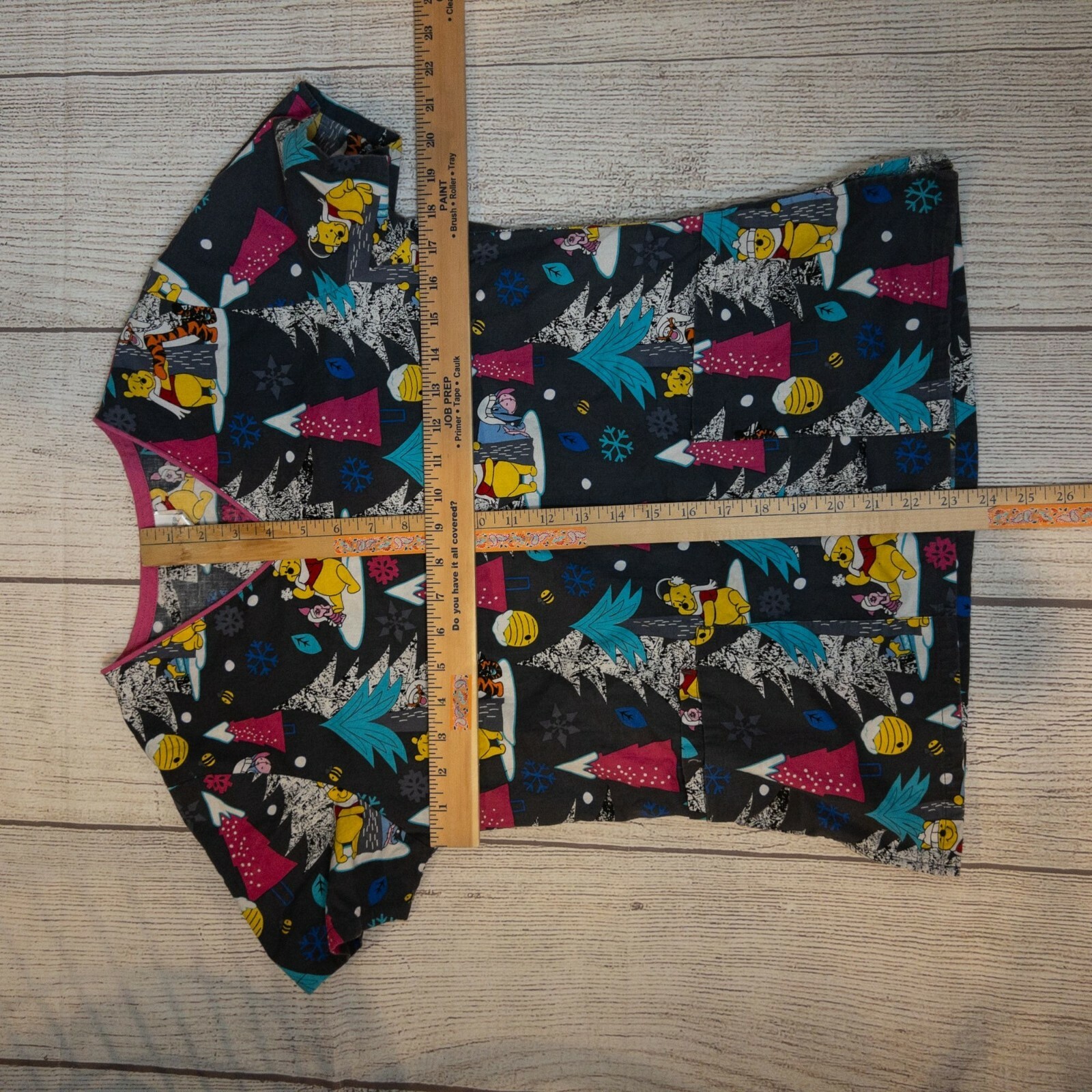Disney Womens Winnie the Pooh Christmas Medical Nursing Scrub Top Sz XS Winter