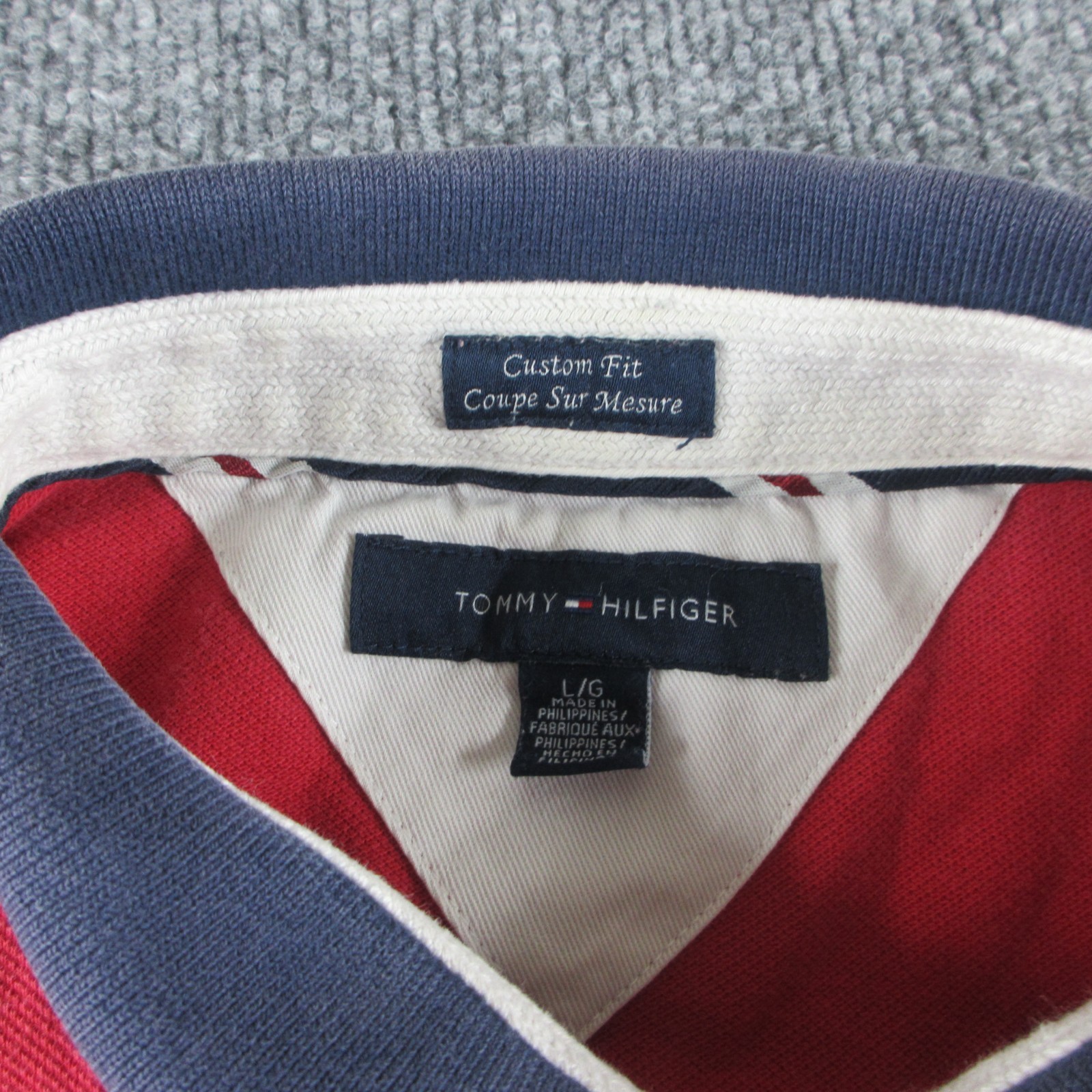 Tommy Hilfiger Polo Shirt Mens L Colorblock Short Sleeve Button Up Crest Logo